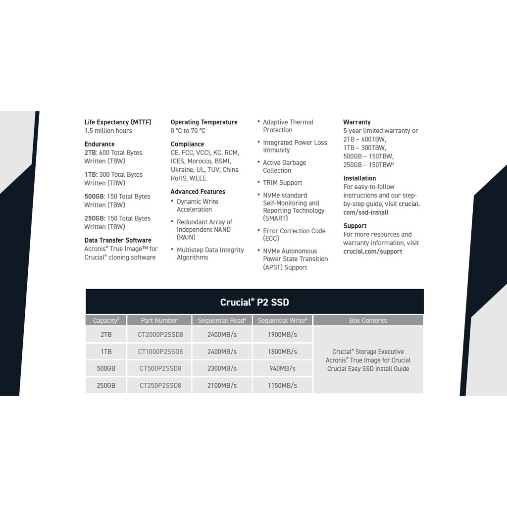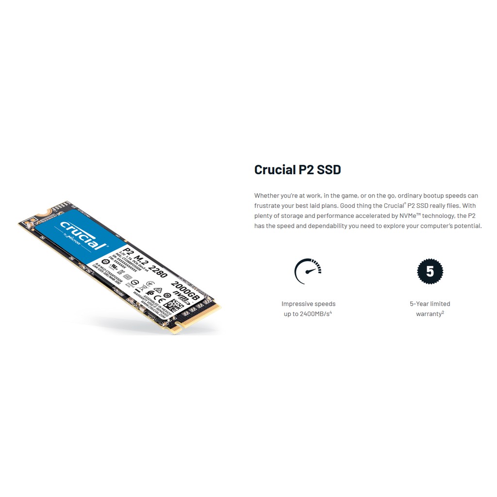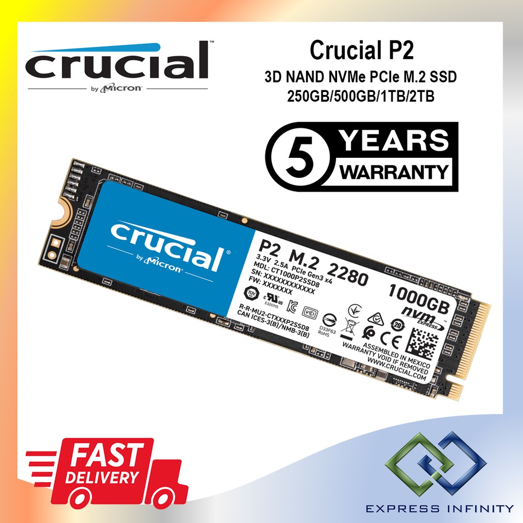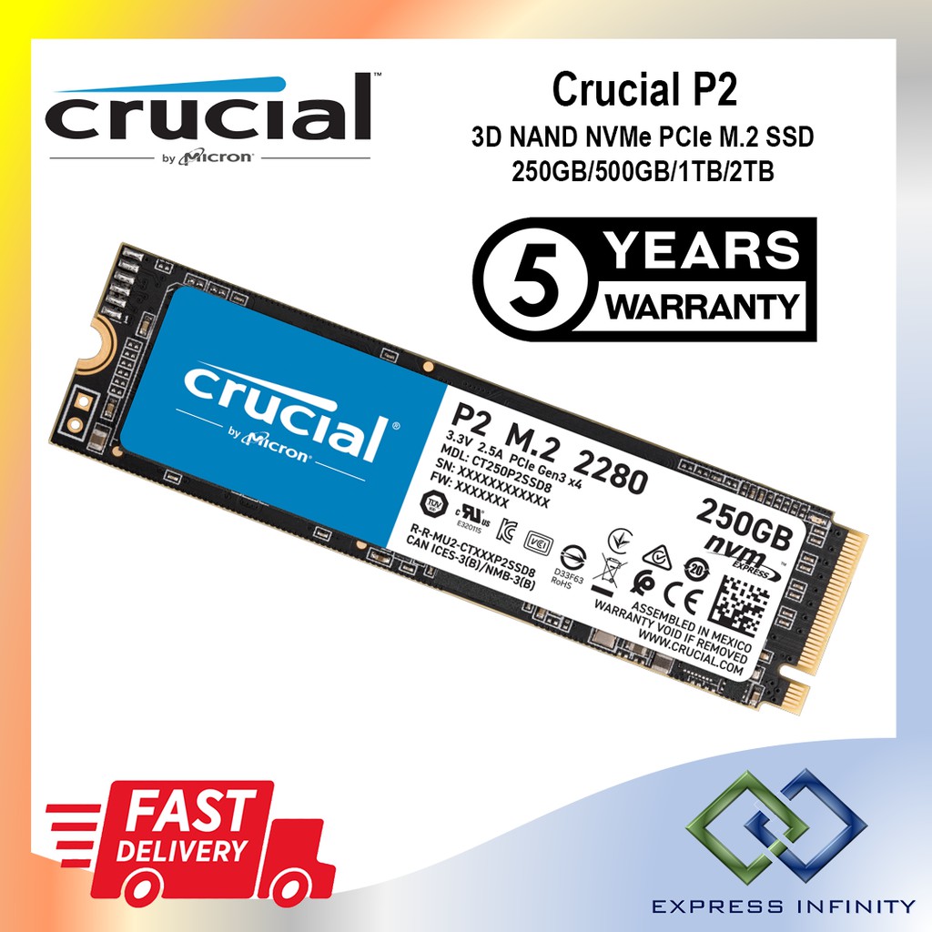 Crucial P2 3D NAND NVMe PCIe M.2 SSD - 250GB/500GB/1TB/2TB Internal SSD *Replace P1
