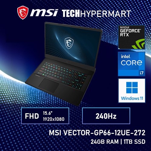 MSI Vector GP66 12UE-272MY 15.6" Laptop/ Notebook (i7-12700H, 16GB, 1TB, NV RTX3060, W11H, 240Hz)