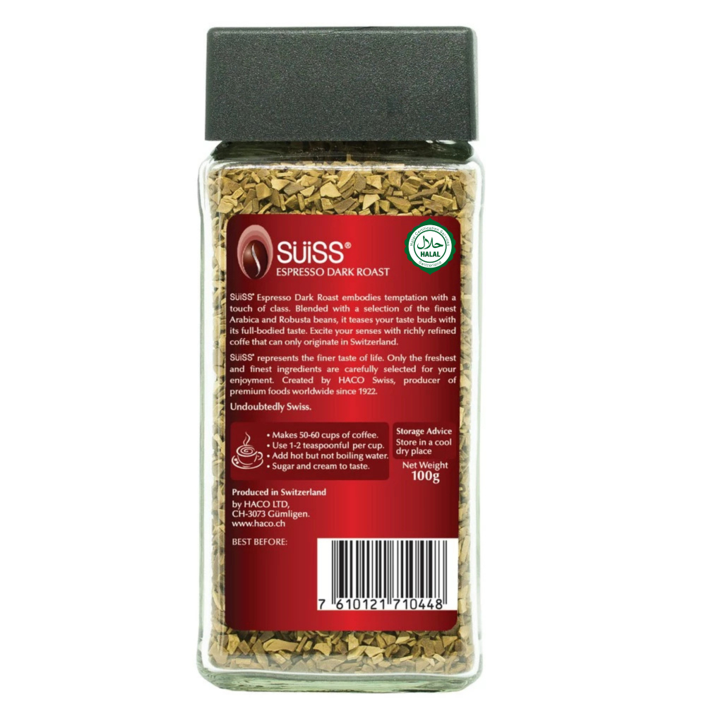 Haco SUiSS Espresso Dark Roast Freeze Dried Soluable Coffee (100g) Halal Certified