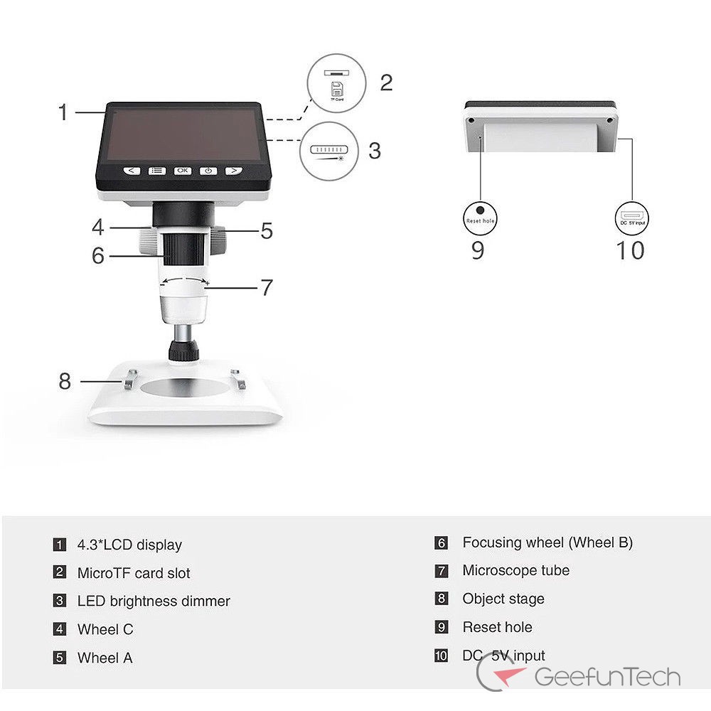 Digital microscope 1000X 4.3'' HD 1080P LCD Monitor Digital Video LCD Microscope Magnifier