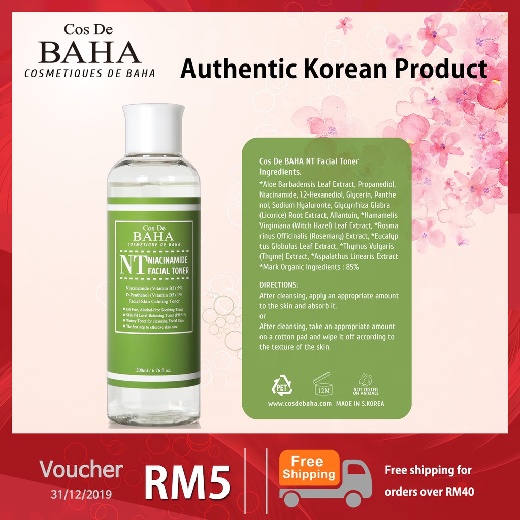 Cos De BAHA - Niacinamide 5% Toner w Vitamin B5 1% - Korean Skin Care for Pore Minimizer