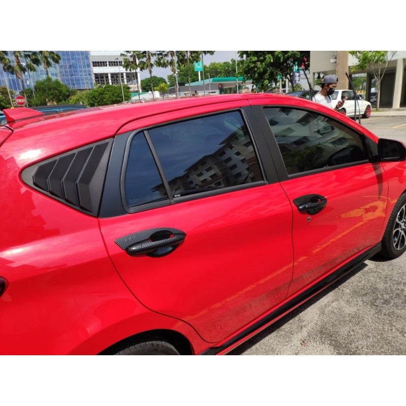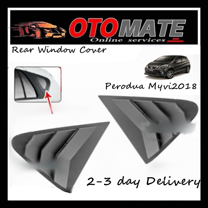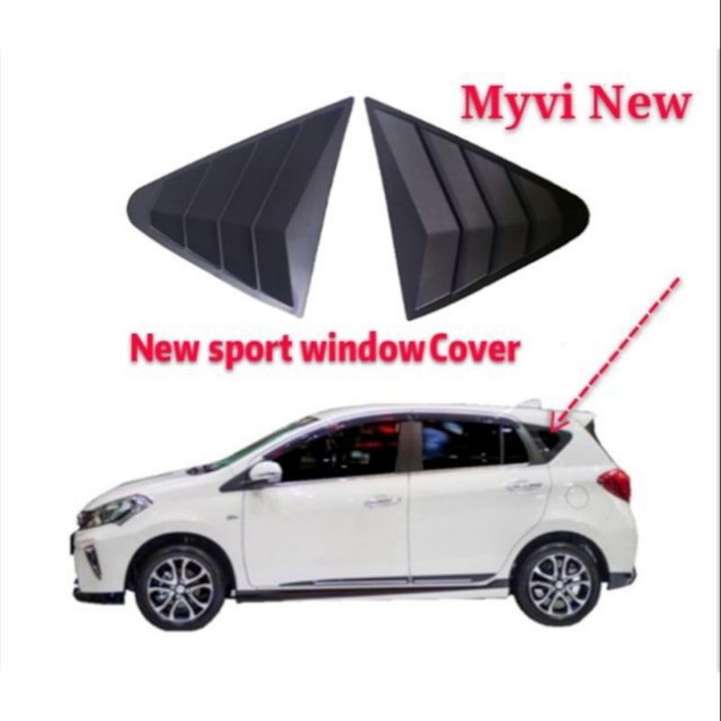 Perodua Myvi 2018 - 2019 Black Rear Side Mustang Cover Window Triangle Mirror Cover Protector (Black Painted)and