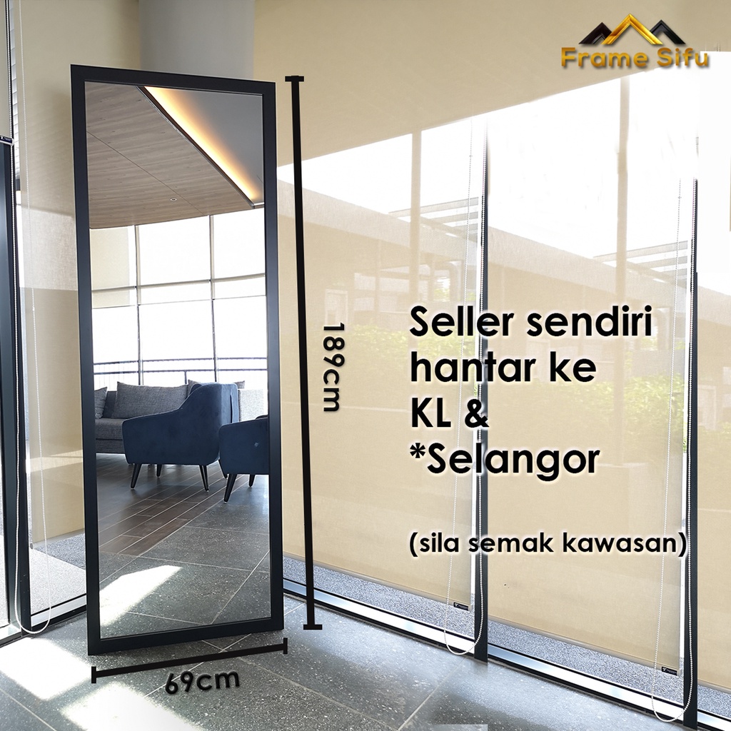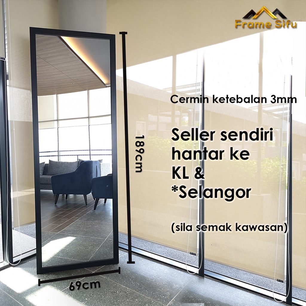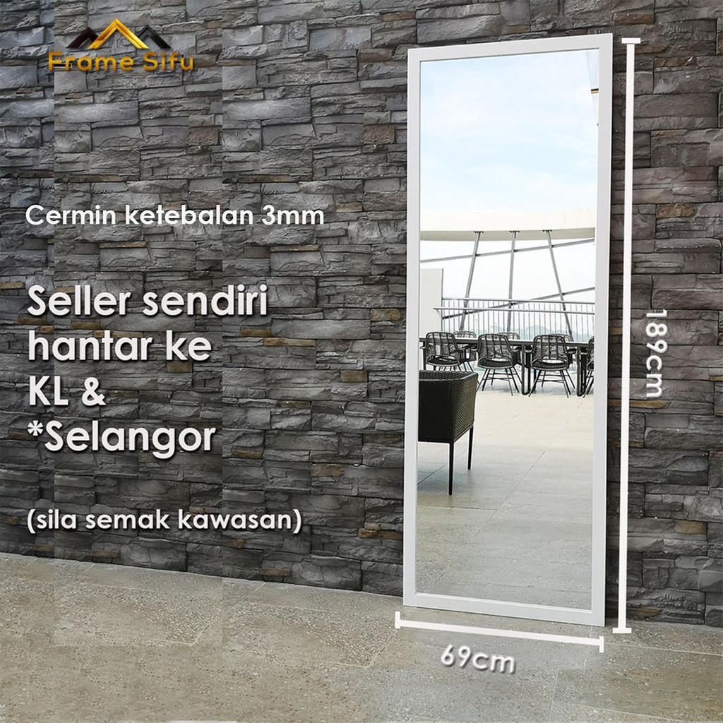 Mirror With Wooden Frame / Cermin Dinding Besar 2ft x 6ft