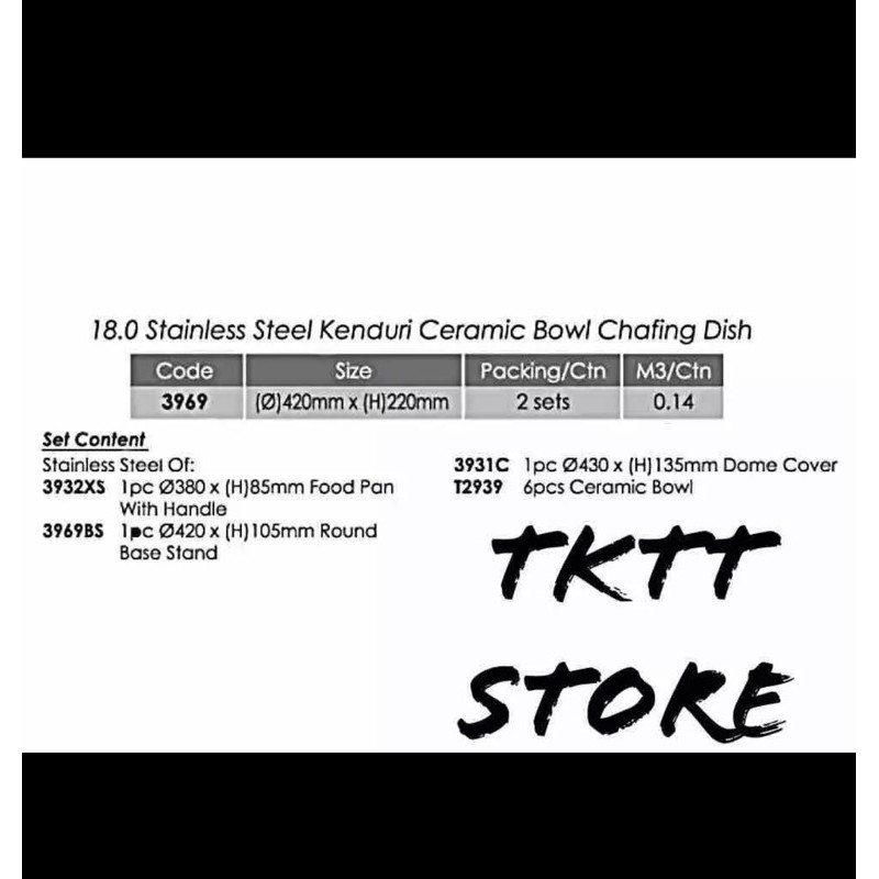 TKTT Zirafah 42cm Stainless Steel Serving Dome Set Chafing Dish Party Set Buffet Set Malay Dome Kenduri Set Serbaguna