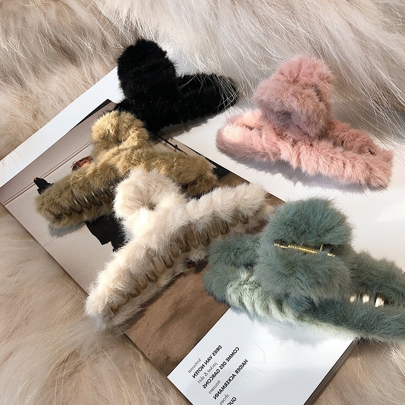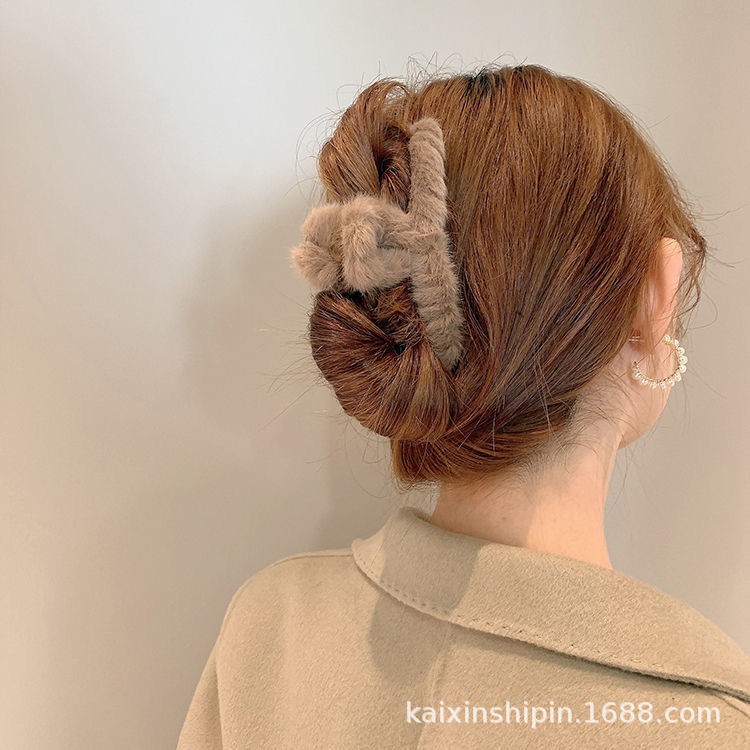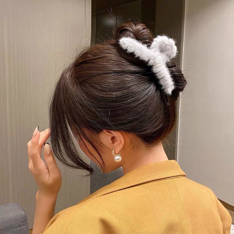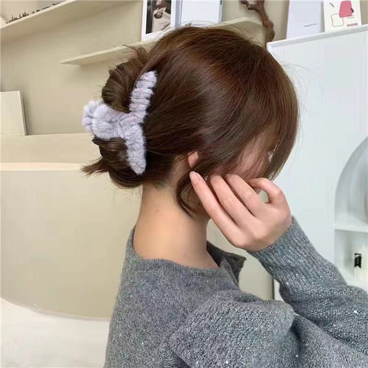 Women Hair Claw Clip Hairpin Autumn Winter Plush Korean Elegant Temperament Clip C-004