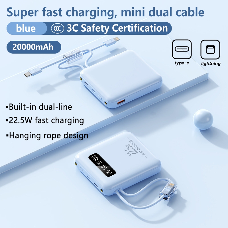 22.5W Fast Charging Powerbank 20000mAh Powerbank 3C Certified Built-in Type‑C/Lightning Cable Digital Display 移动电源 Portable Powerbank