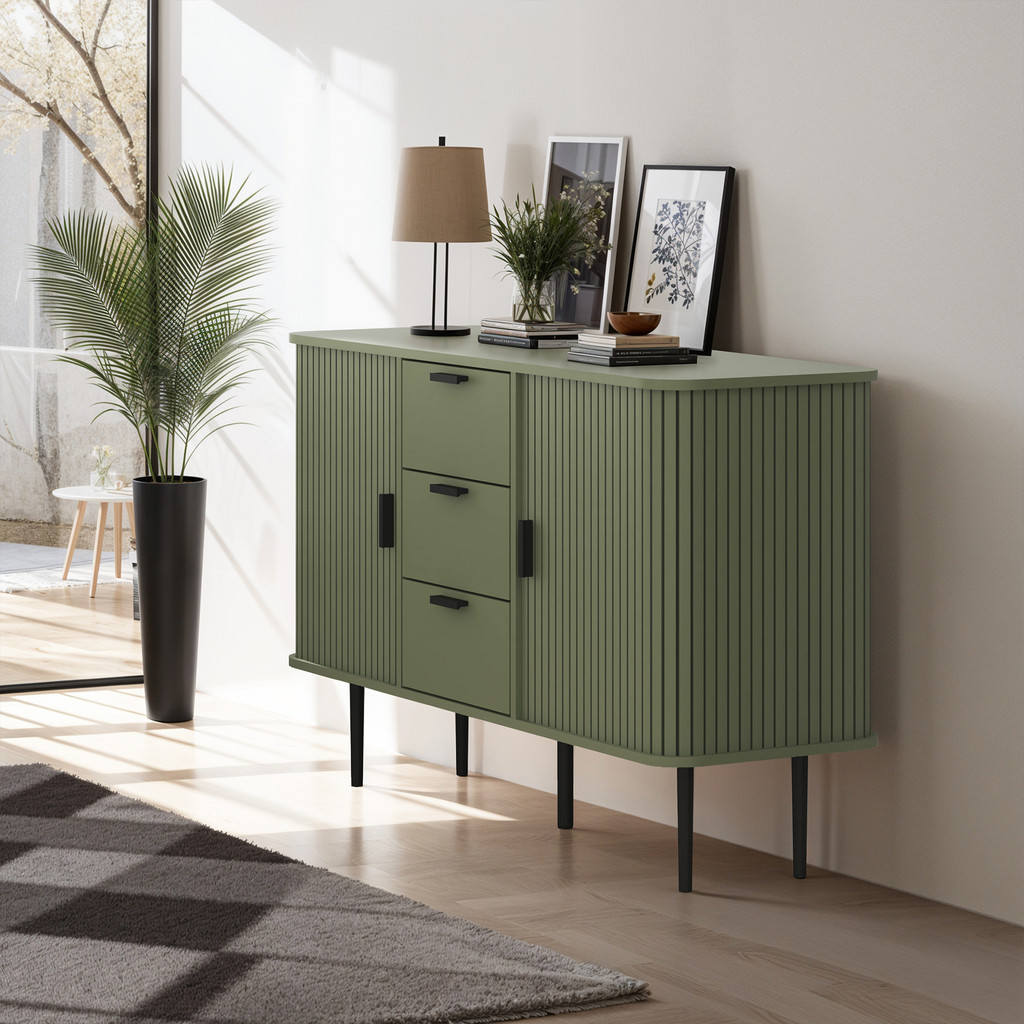 Synergy House Stanney Muji Style Sliding 2 Door 3 Drawer Sideboard (3.94ft)