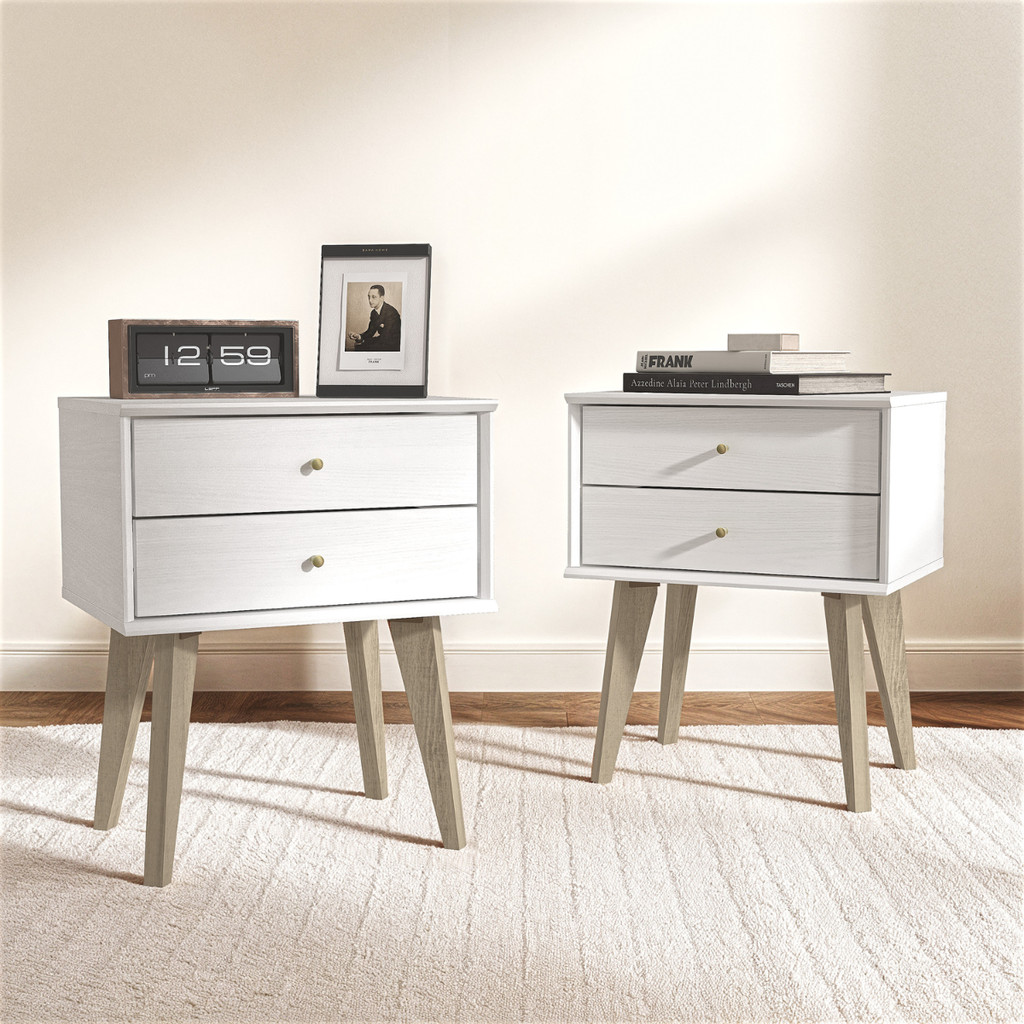 Synergy House Abby Retro 2 Drawer Nightstand 1.84ft Side Table Bedroom (2 Pcs)