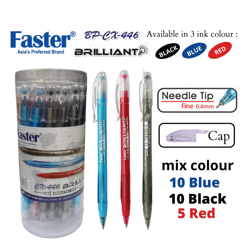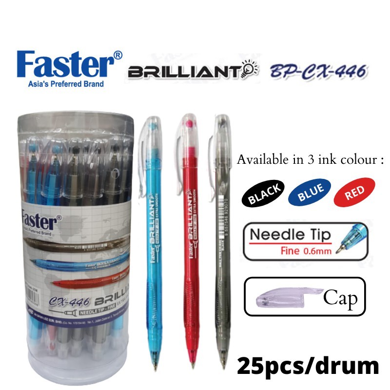 FASTER BP-CX446 0.6mm BRILLIANT BALL PEN - 25pcs/Drum PEN BOLA CEMERLANG 圆珠笔