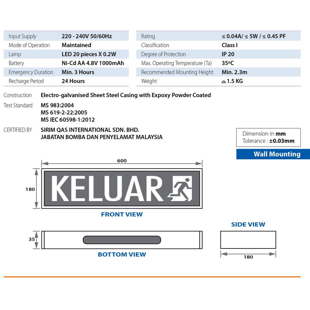 Kelip Kelip LED Keluar Sign (Sirm Bomba Approved) + Free Gift