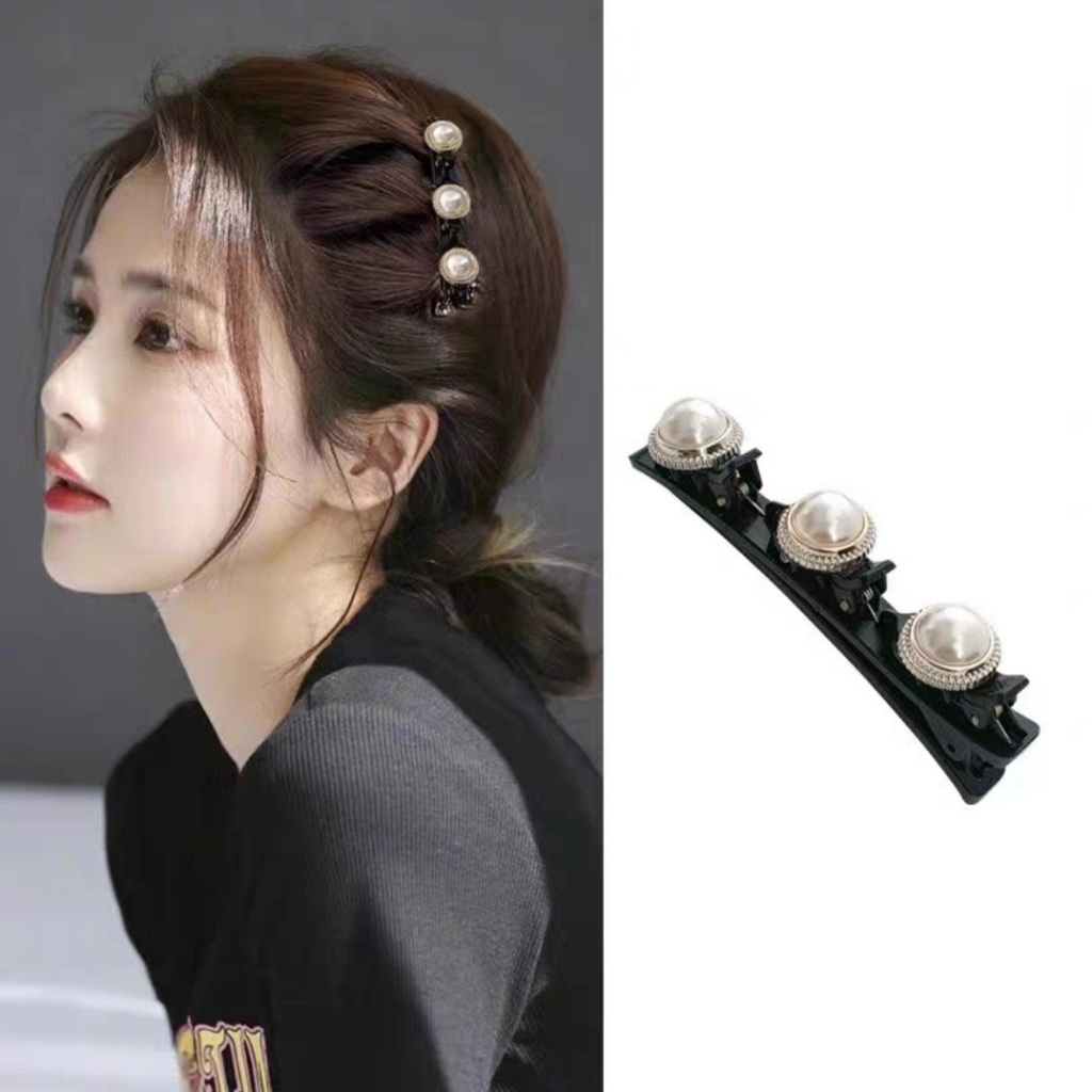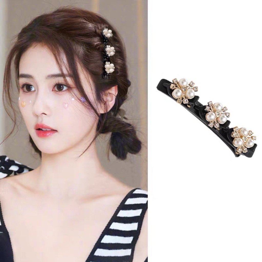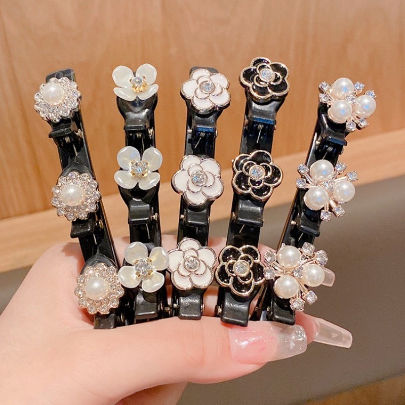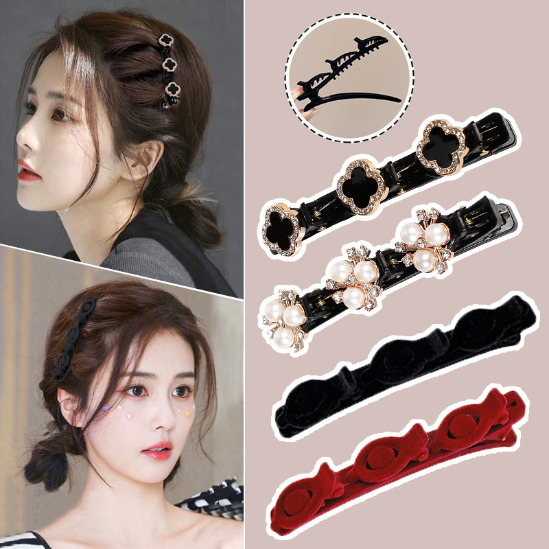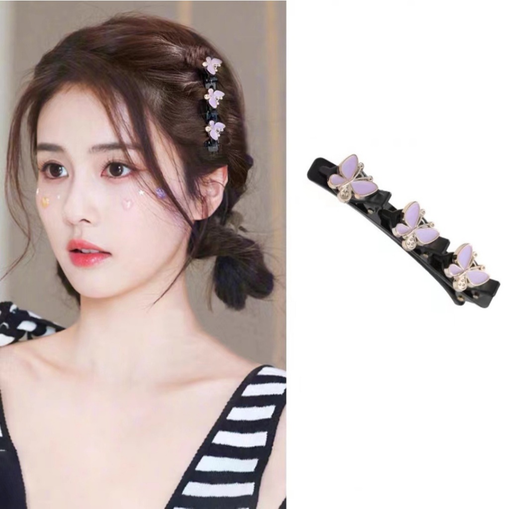 JOJO COCO Flocking Double Layer Braided Hair Clip for Women's Forehead Bangs Side Clip Korean Style Butterfly Pearl Hair Clip