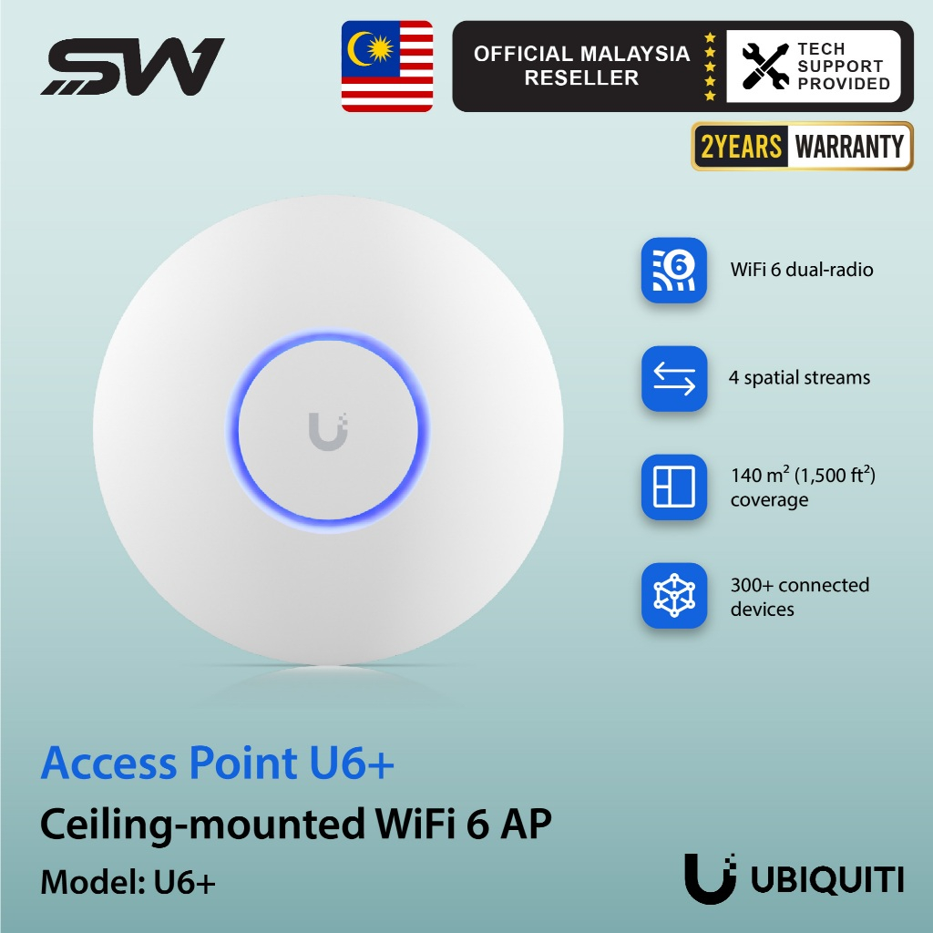 Ubiquiti U6+ Compact Access Point with higher performance and Dual Band Wifi-6 Support