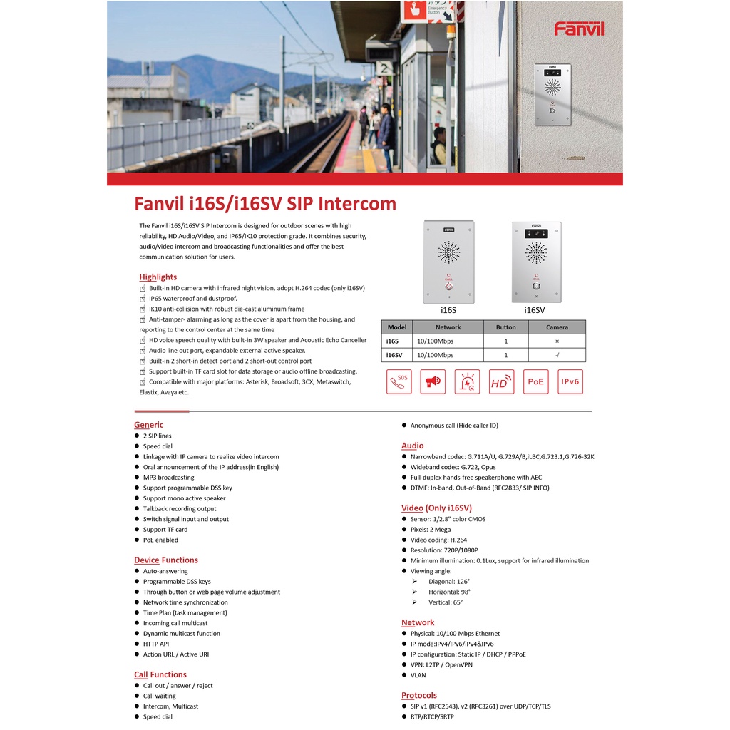Fanvil i16S/i16SV SIP Intercom w/o Camera | Billionmark