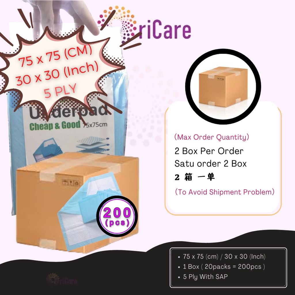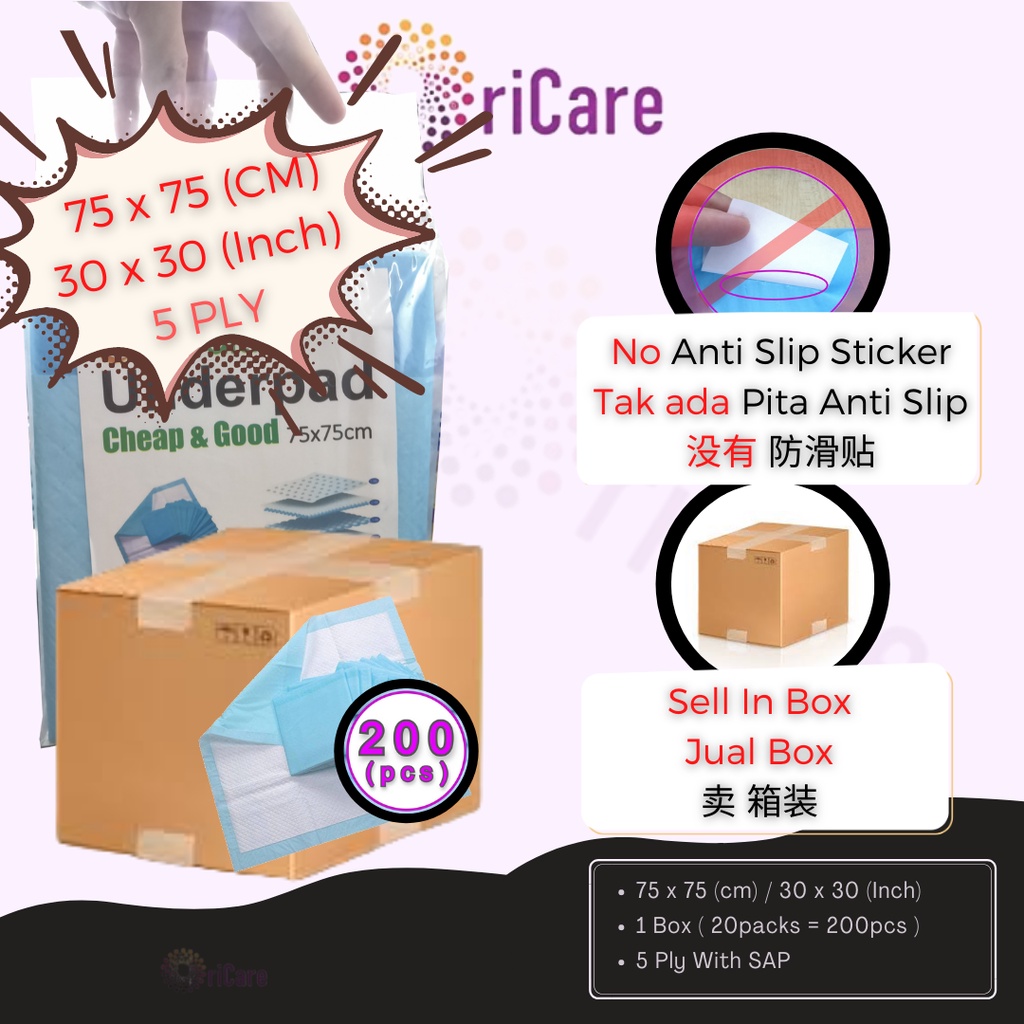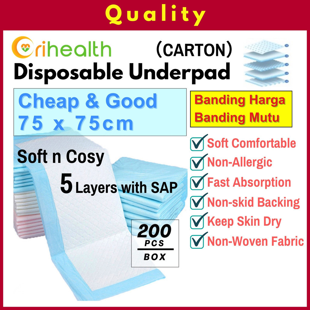 (By carton 200s) Orihealth Underpad 75cm x 75cm 30"x30" Cheap & Good 4 Ply 一次性医用护垫 10s x 20 = 200 pcs