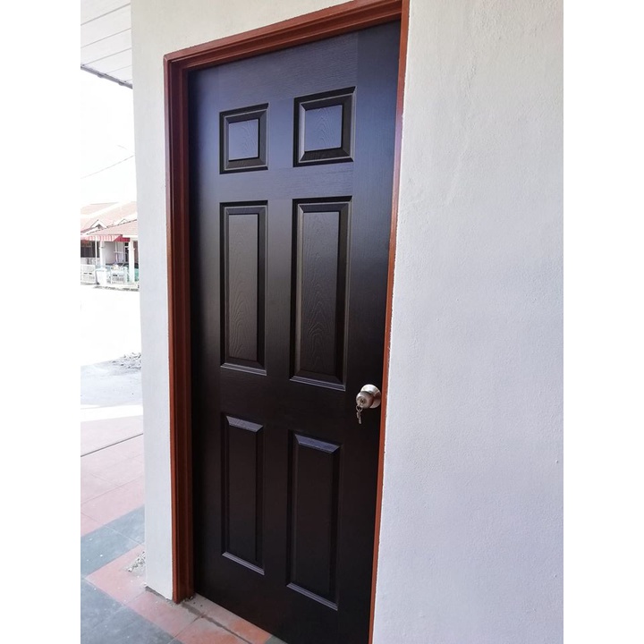 Wooden Door Moulded Door Semi-Solid Pintu Kayu Bilik Rumah Termasuk Cat Walnut , Standard Size, Special Size