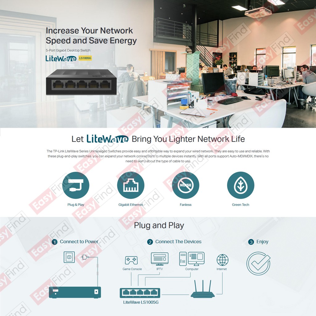TP-Link LS1005G 5-Port 10/100/1000Mbps Desktop Switch