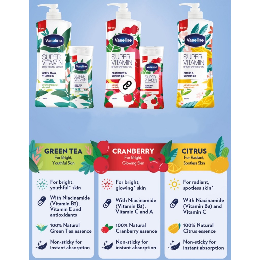 VASELINE Super Vitamin Brightening Serum Green Tea/Citrus Vitamin B3 380ml [READY STOCK& FAST SHIPMENT]