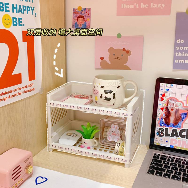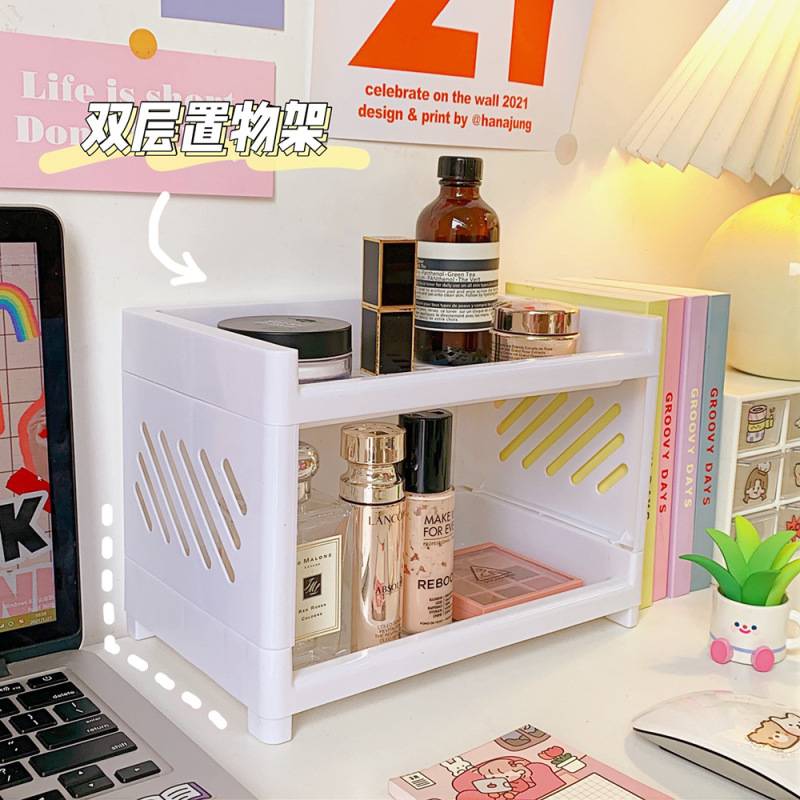 Steve New Ins Makeup Double-layer Folding Plastick Storage Rack Desktop Bathroom Rack 收纳架