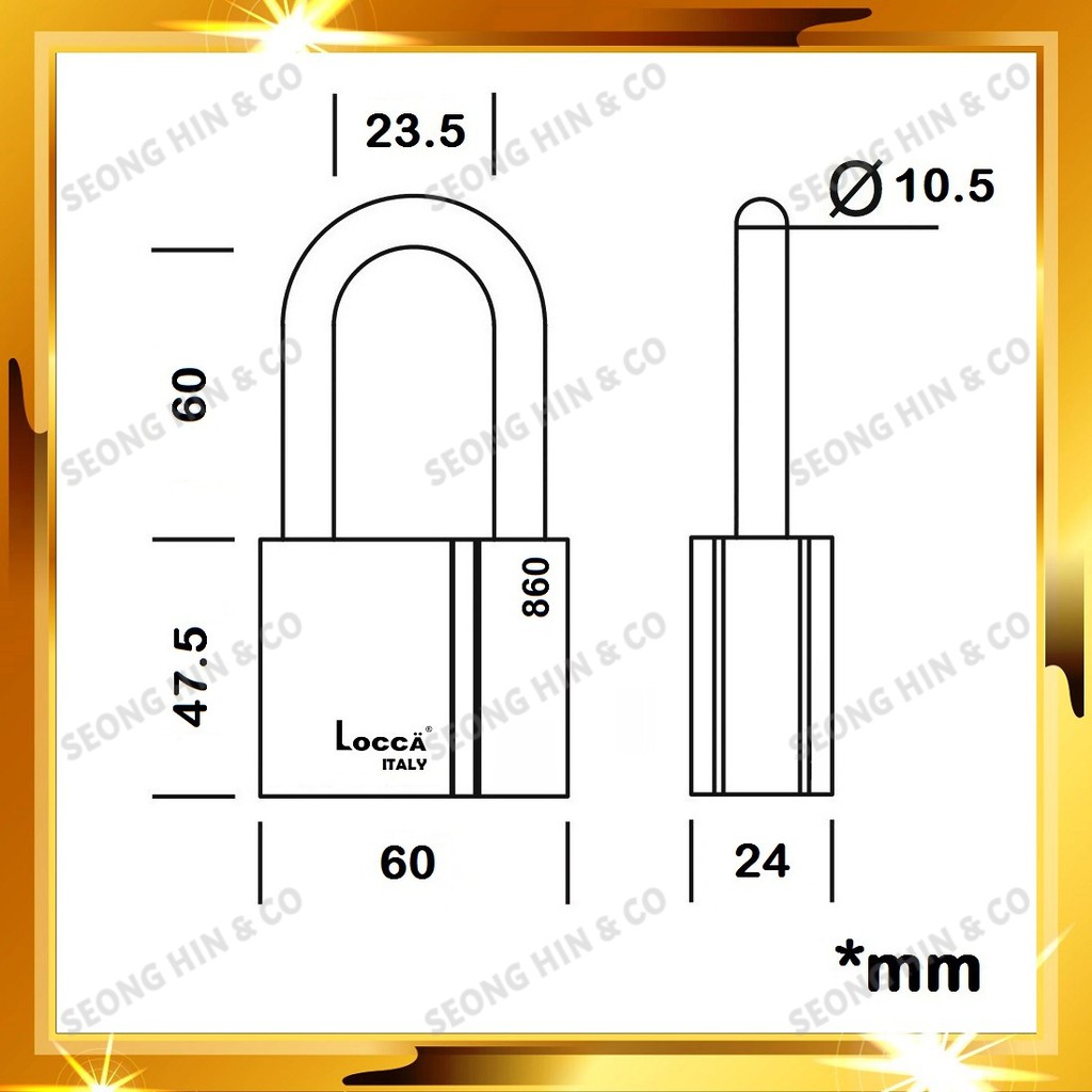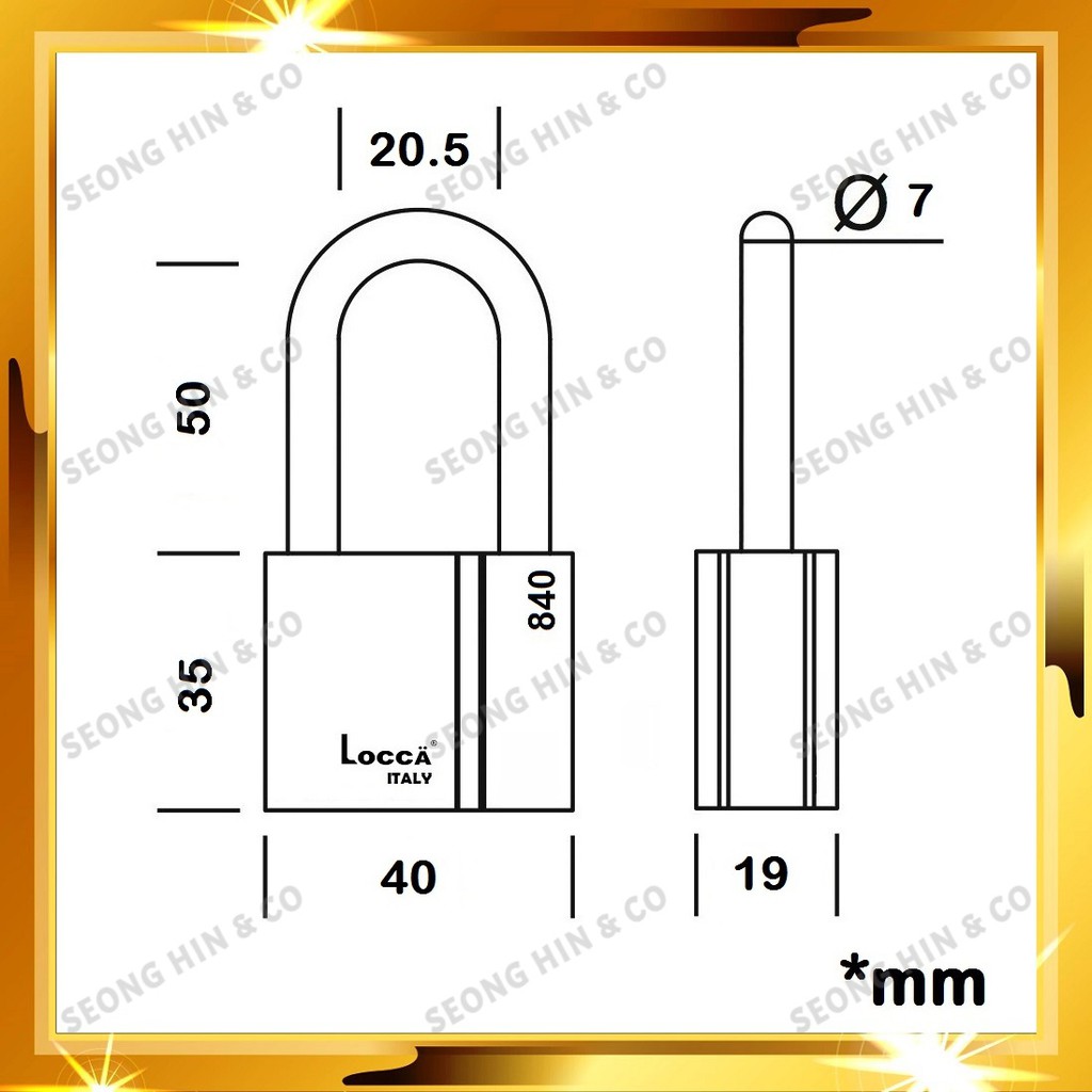 Locca 40mm / 50mm / 60mm Genuine Heavy Duty Long Shackle Anti Cut Steel Padlock