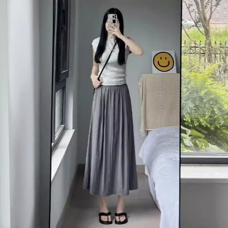 ironless New style cooling elastic high waist Viscose A -line maxi long skrit