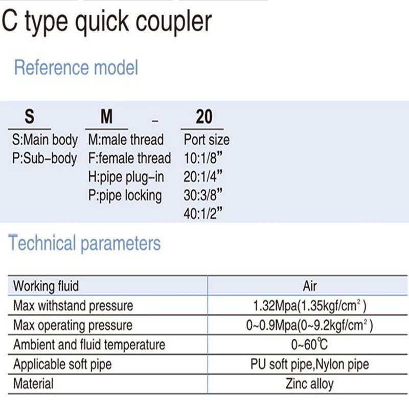 Pneumatic Fitting (M.STOCK) Quick Coupler Connector C Type Air hose Accessories SP20 PP20 PM20 SH20 PH20 SF SM20 PF30