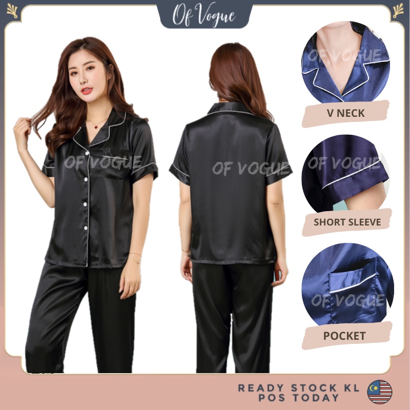 Silk Satin Pajamas Set Women Men Short Sleeve Sexy Sleepwear Satin Homewearr Nightwear Baju Tidur Silk