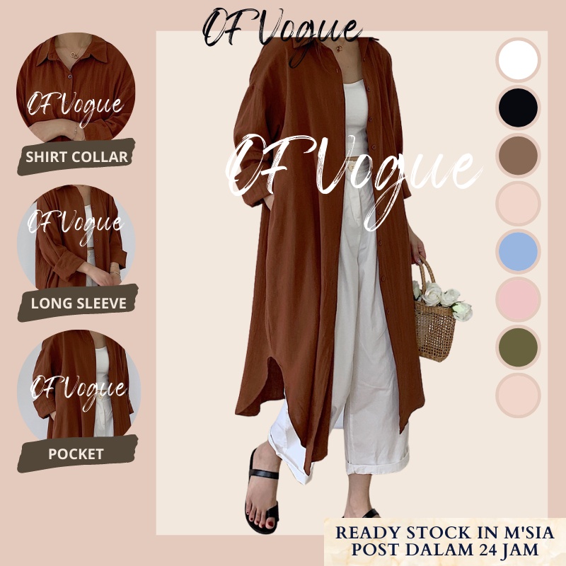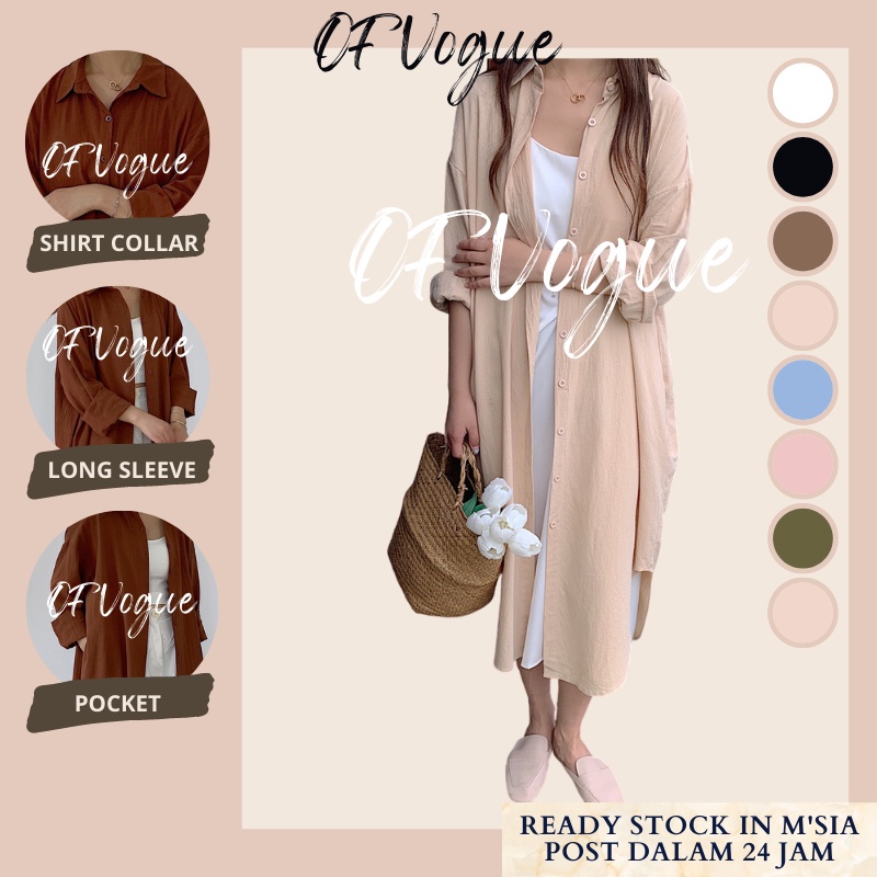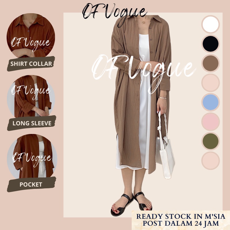 OFVOGUE Korean Lazy Simple Basic Comfortable Long Shirt Windbreaker Jacket Shirt Women Outwear