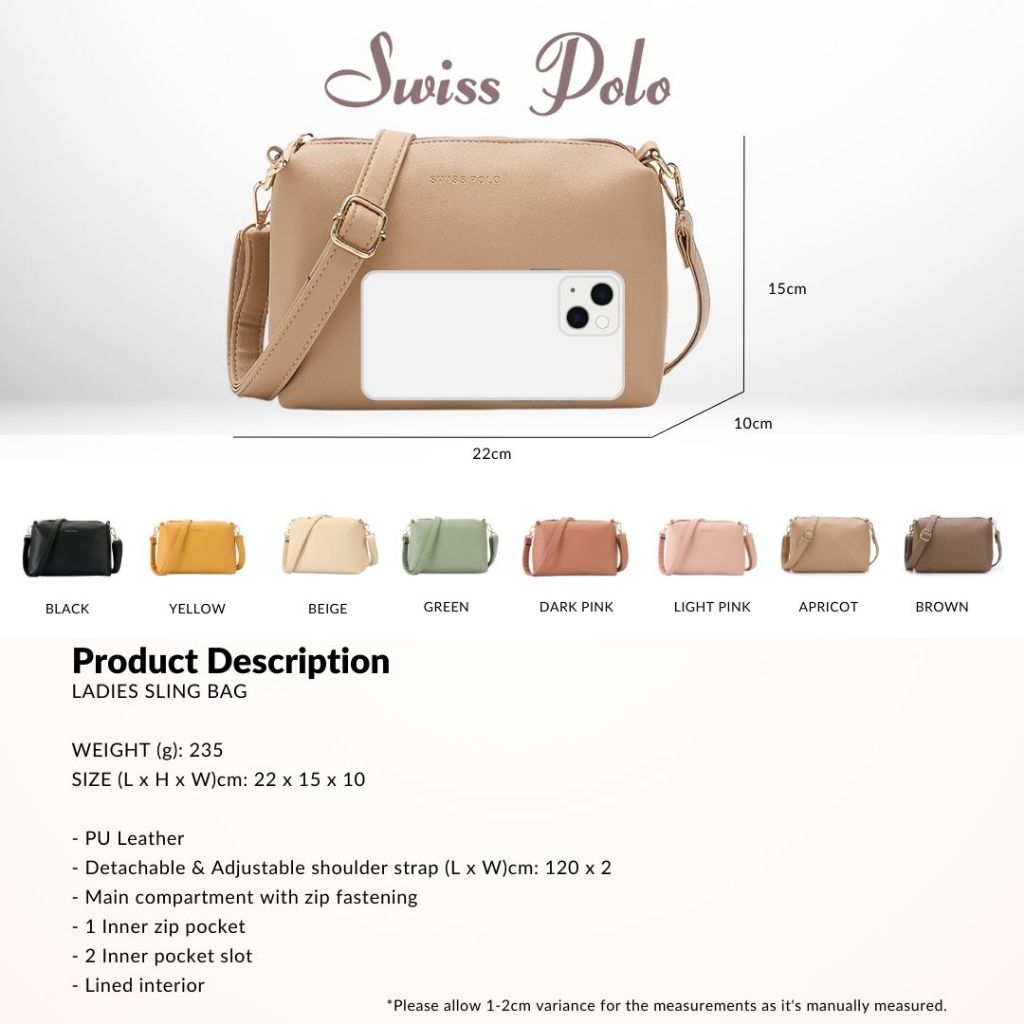 SWISS POLO Ladies PU Leather Adjustable Shoulder Sling Bag - Multi Colour HBV 801