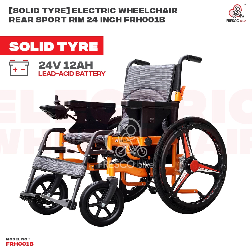 (Solid Tyre) Fresco Electric Wheelchair Lightweight Sportrim 24" FRH001B Wheelchair Travel Kerusi Roda Elektrik