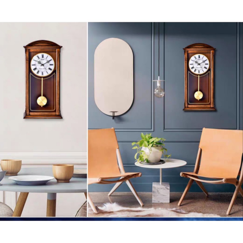 100% ORIGINAL SEIKO Dual Chime Pendulum Wooden Wall Clock QXH030B [Jam Dinding]