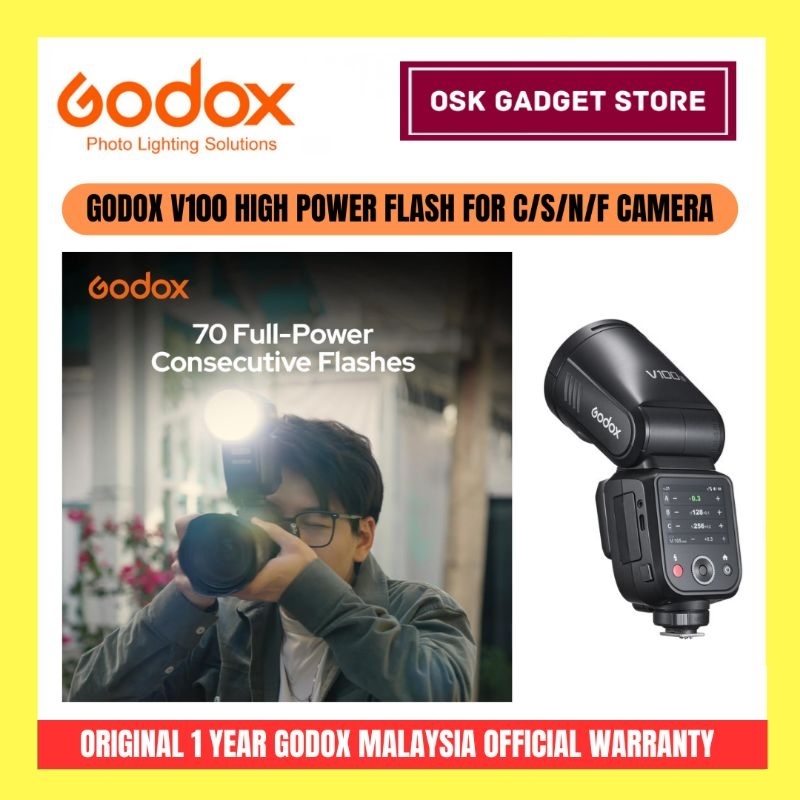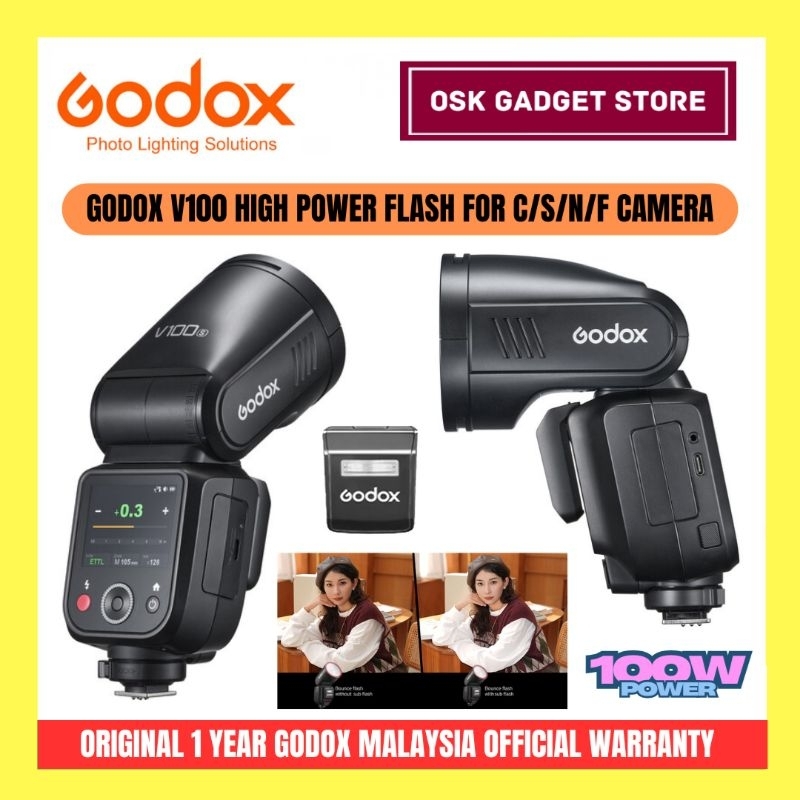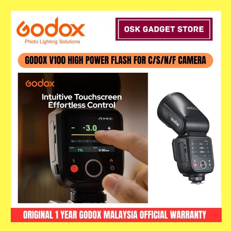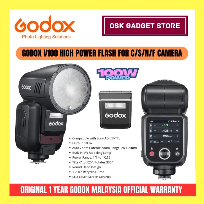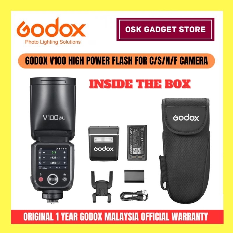 Godox V100 High Power Flash For Canon Sony Nikon Fujifilm Camera | Bundle Package | 1 Year Godox Malaysia Warranty
