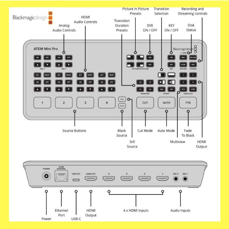 Blackmagic Design Atem Mini Pro Multi Channel Live Stream HDMI Switcher ( 1 Year Warranty)