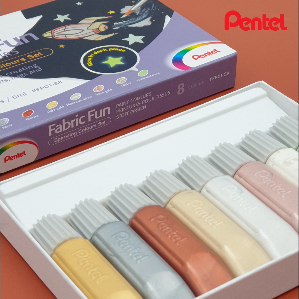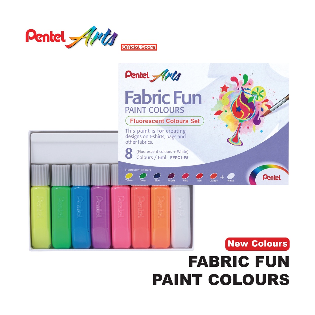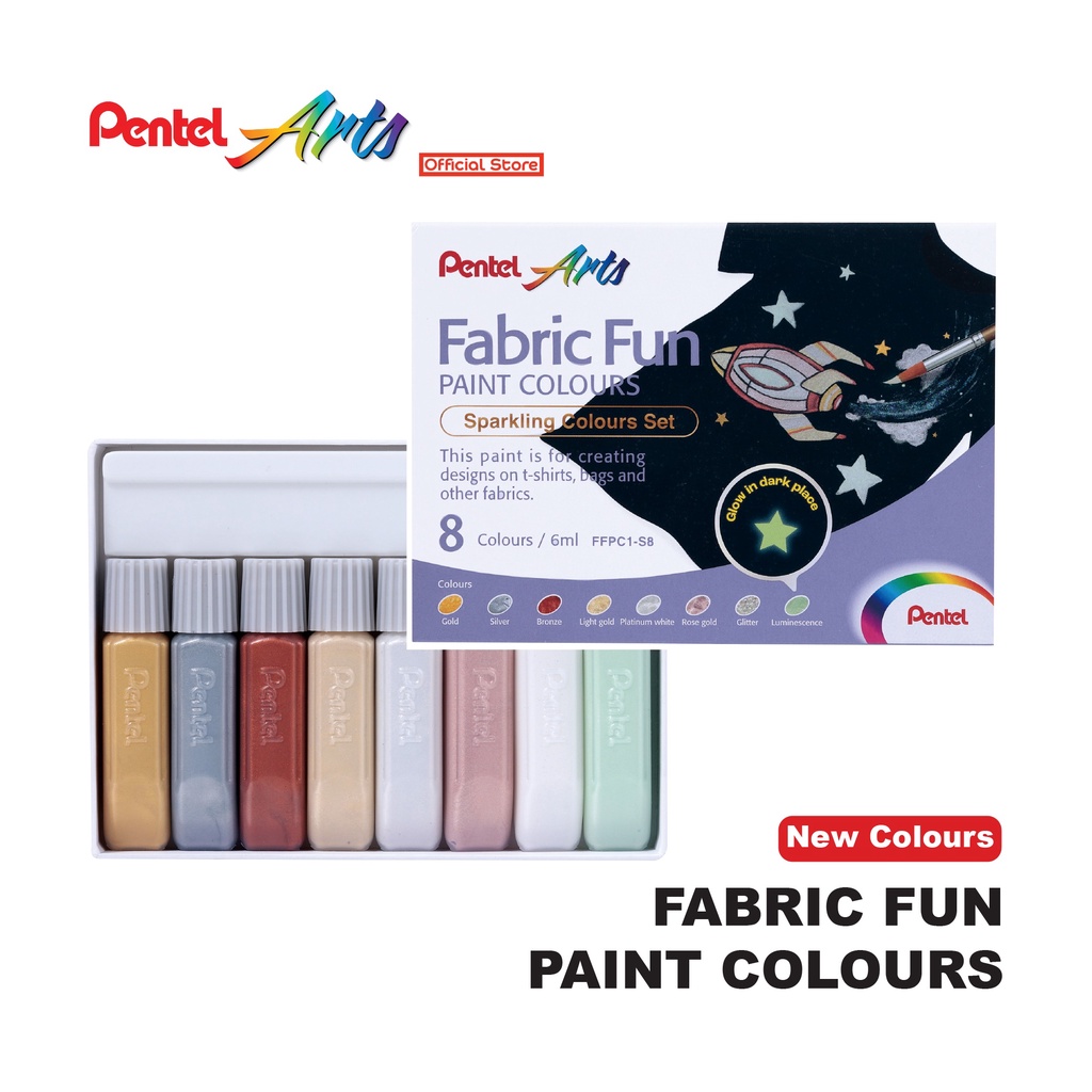 Pentel Fabric Fun Paint Colours - Fluorescent/Sparkling Sets