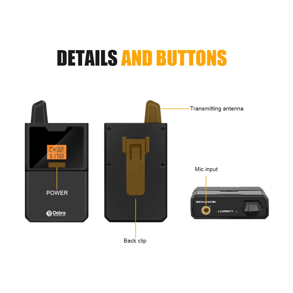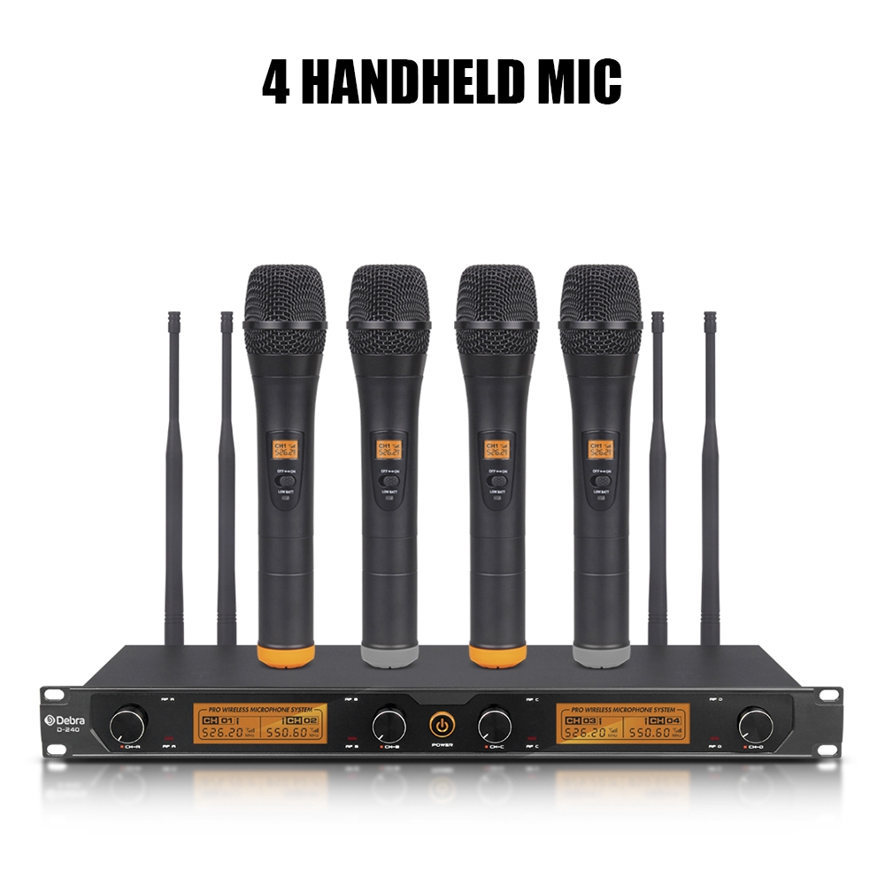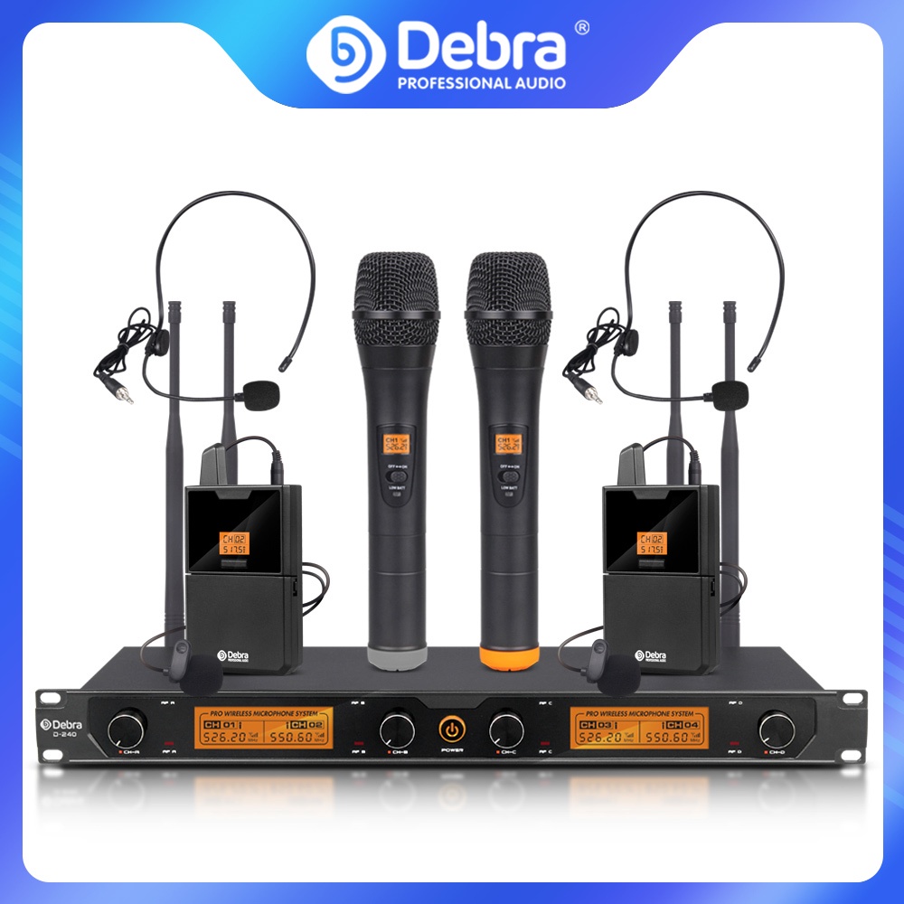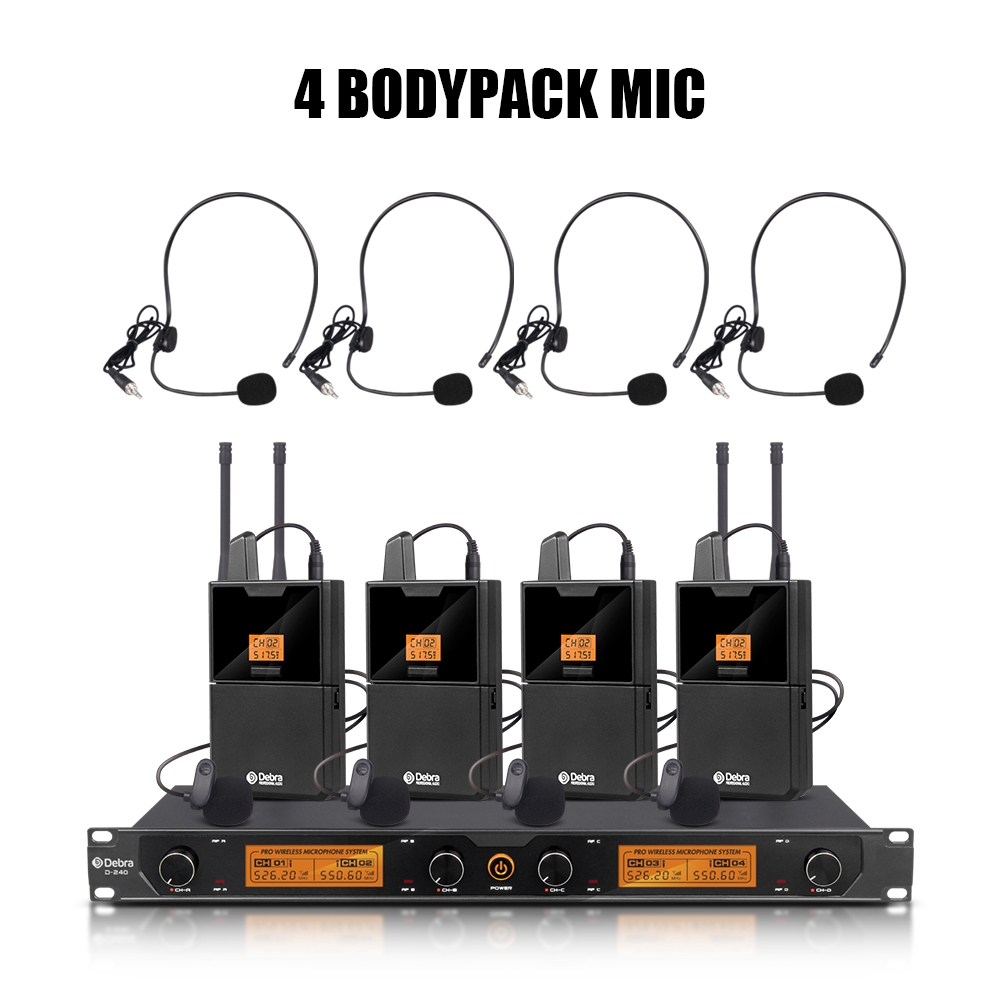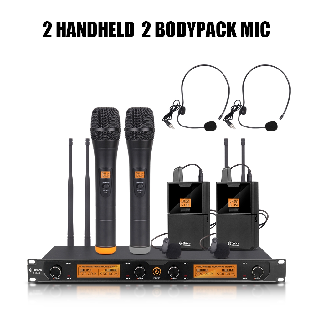 Debra Audio D-240 4 Channel Handheld or Lavalier & Headset UHF Wireless Microphone System For speech Karaoke party