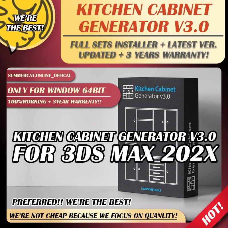 V4.0【LIFETIME】KITCHEN CABINET GENERATOR for 3DS MAX 2016-202X (Fully After Service🎯)Last Updated🔥ARCHITECTURE FURNITURE