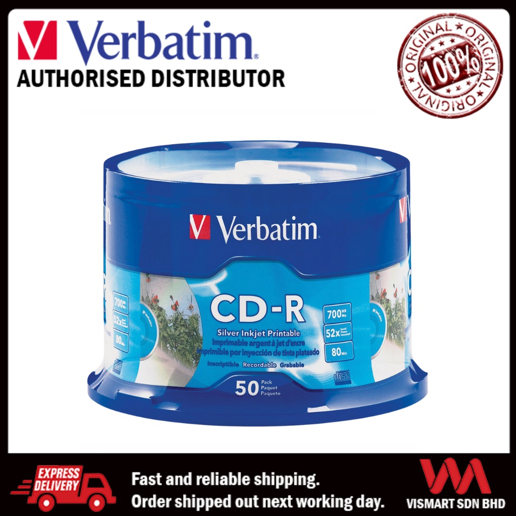 Verbatim CD-R 700MB 52X Silver Inkjet 50pcs Cakebox 95005