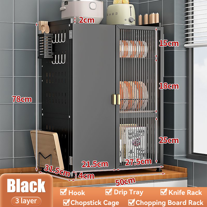 Rak Pinggan Kitchen Cabinet Dish Drying Rack Rak Dapur Stainless Steel Dish Drainer Multifunctional Cupboard