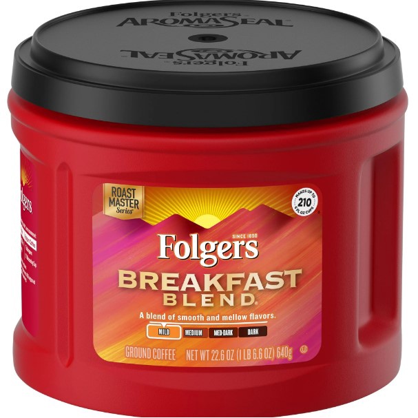 Folgers Breakfast Blend Ground Coffee, Smooth & Mild Coffee, 22.6 Ounce Canister