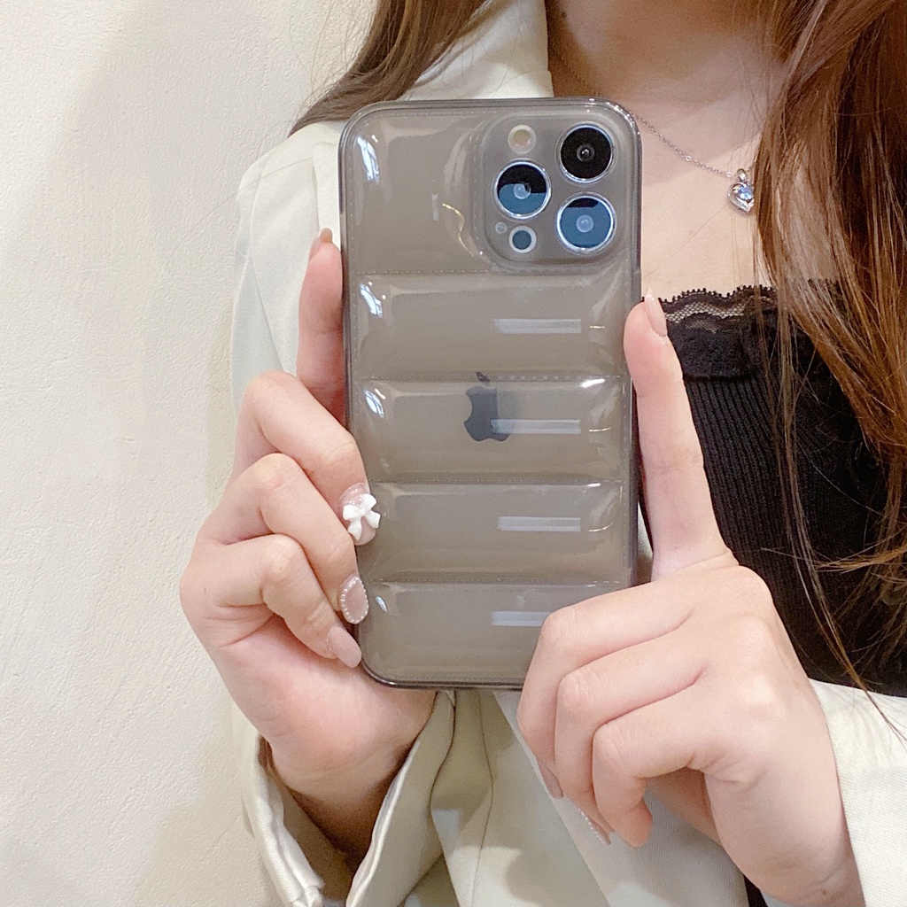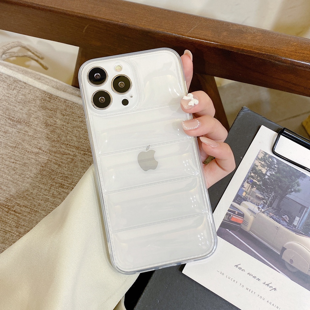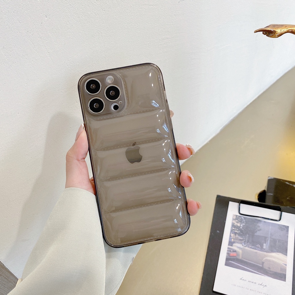 Transparent Down Jacket The Puffer Case for iPhone 11 12 13 Pro Max 13Pro X XR XS 7 8 Plus Soft TPU Silicone Shockproof Cover