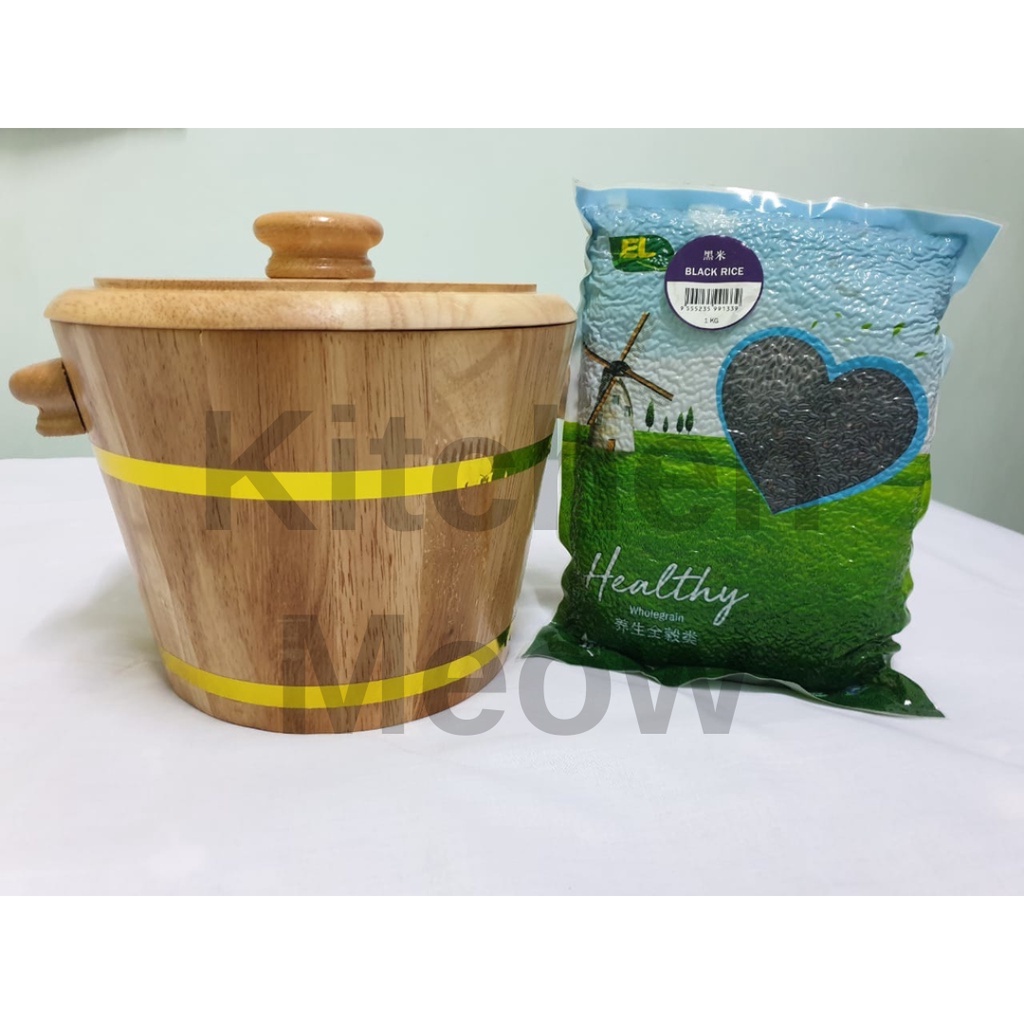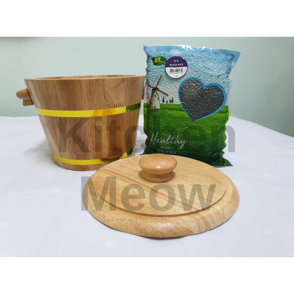Baldi beras Nasi Penyimpan Beras Wooden Rice Bucket / Rice storage container 6kg & 10kg Wood Rice Bucket Kitchen Meow