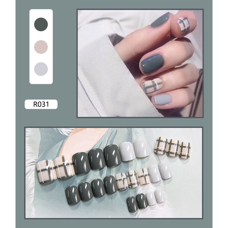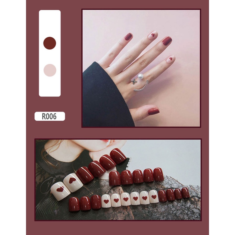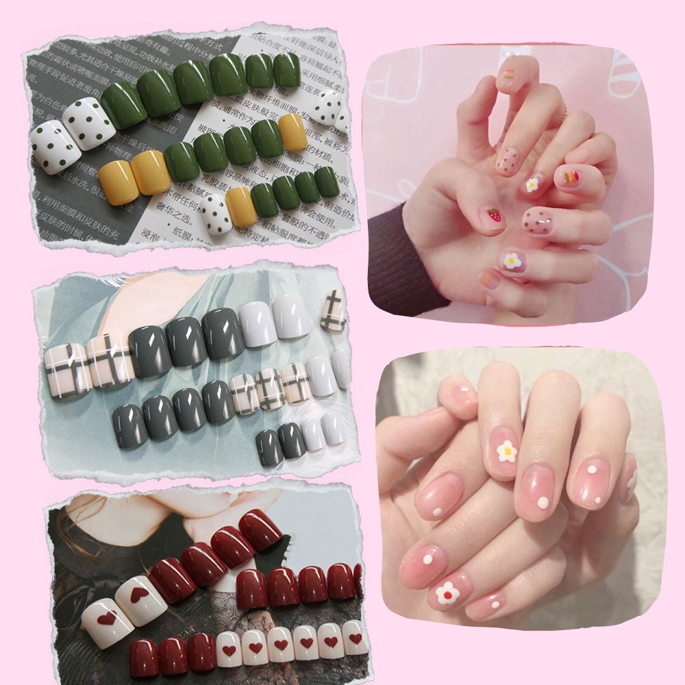 24pcs Fake Nail Set With Glue Nail Sticker Kuku Palsu Nail Care Nail Beauty Wear Manicure 美甲 穿戴 [READY STOCK]