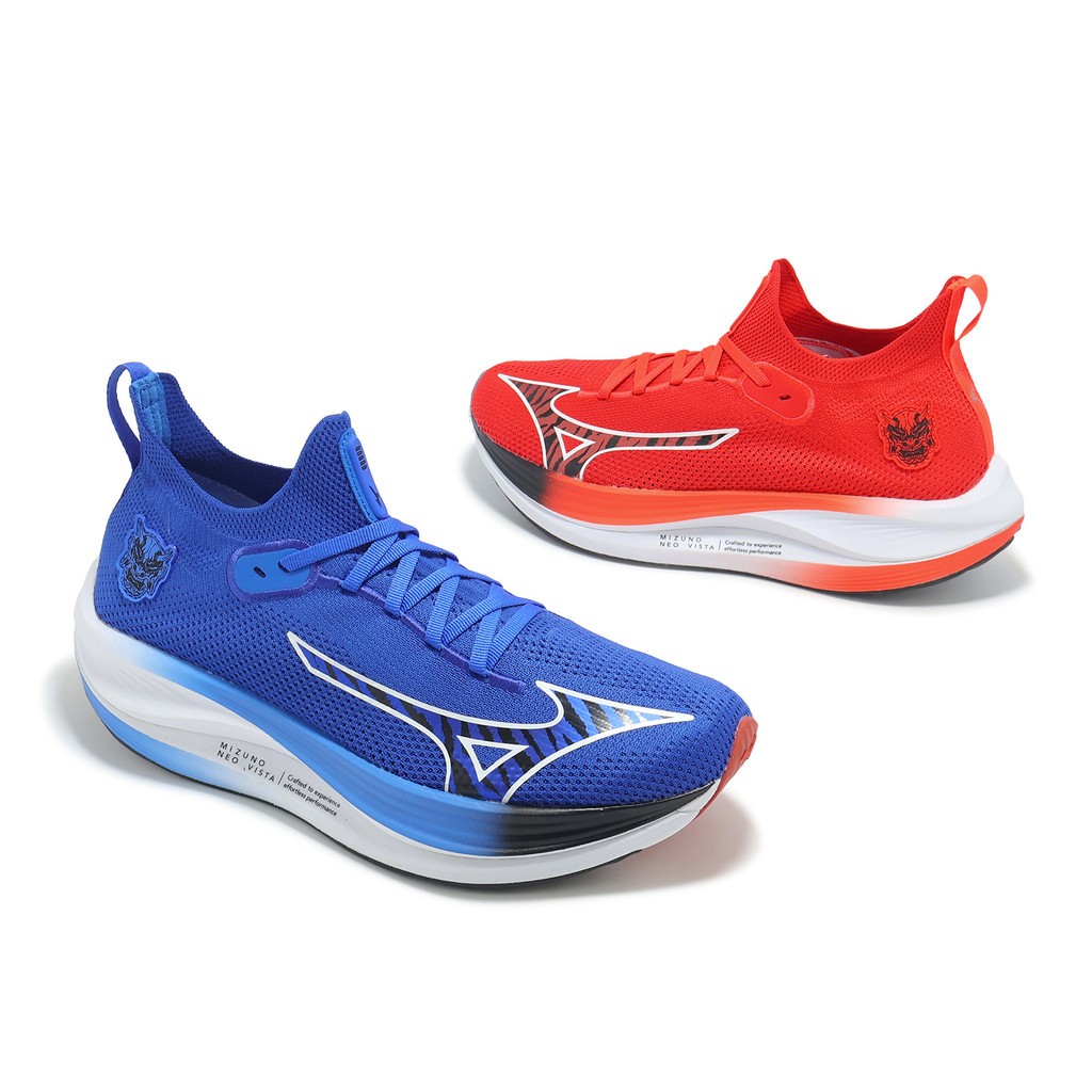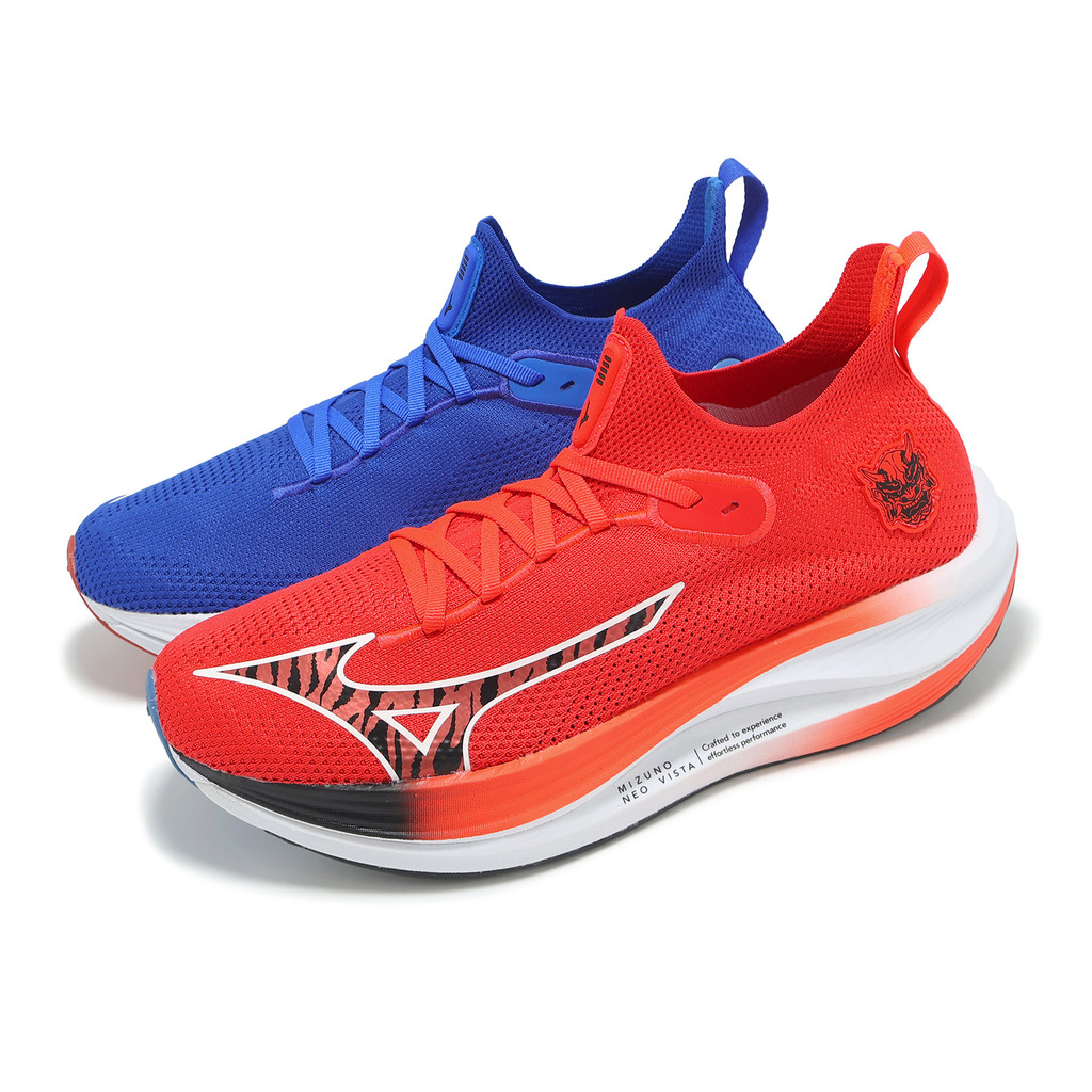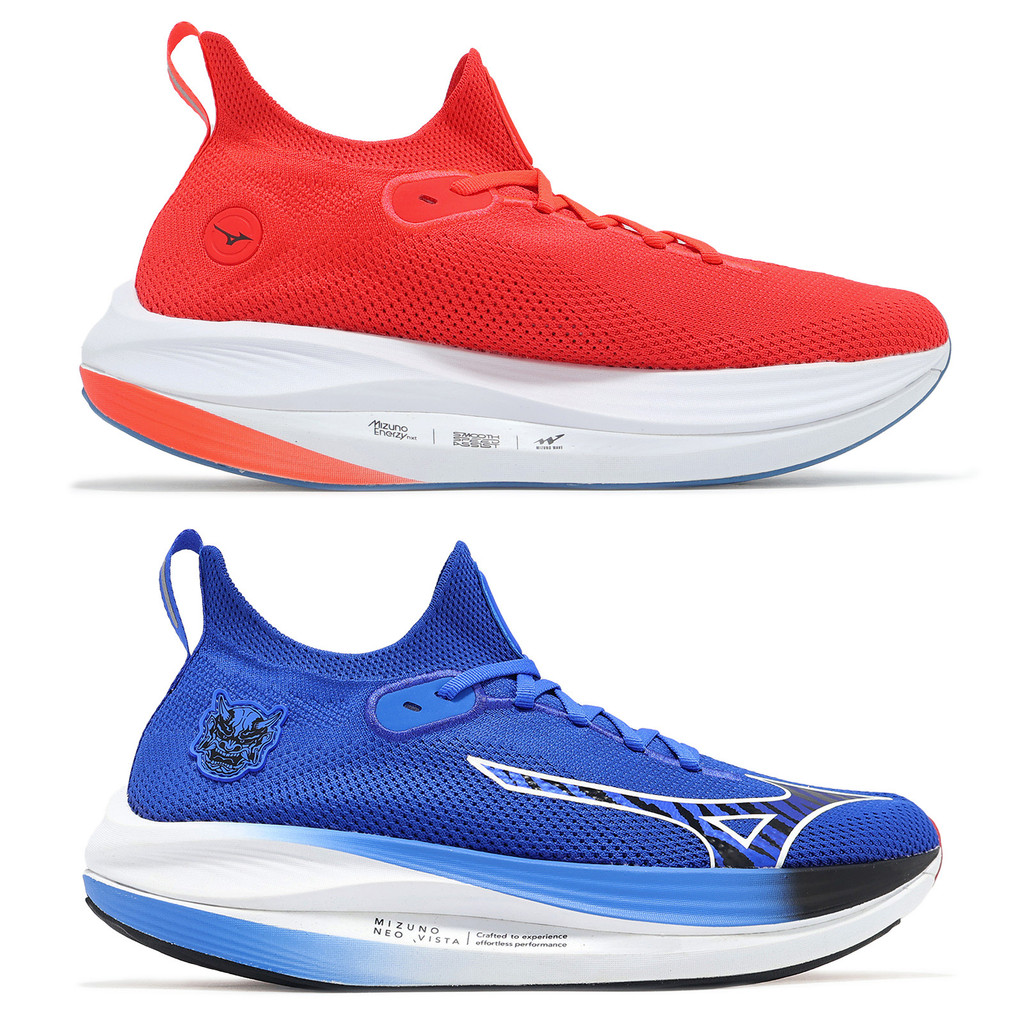 Mizuno Jogging Shoes Neo Vista Men's Red Blue Mandarin Duck Socks Cushioning [ACS] J1GC2447-53