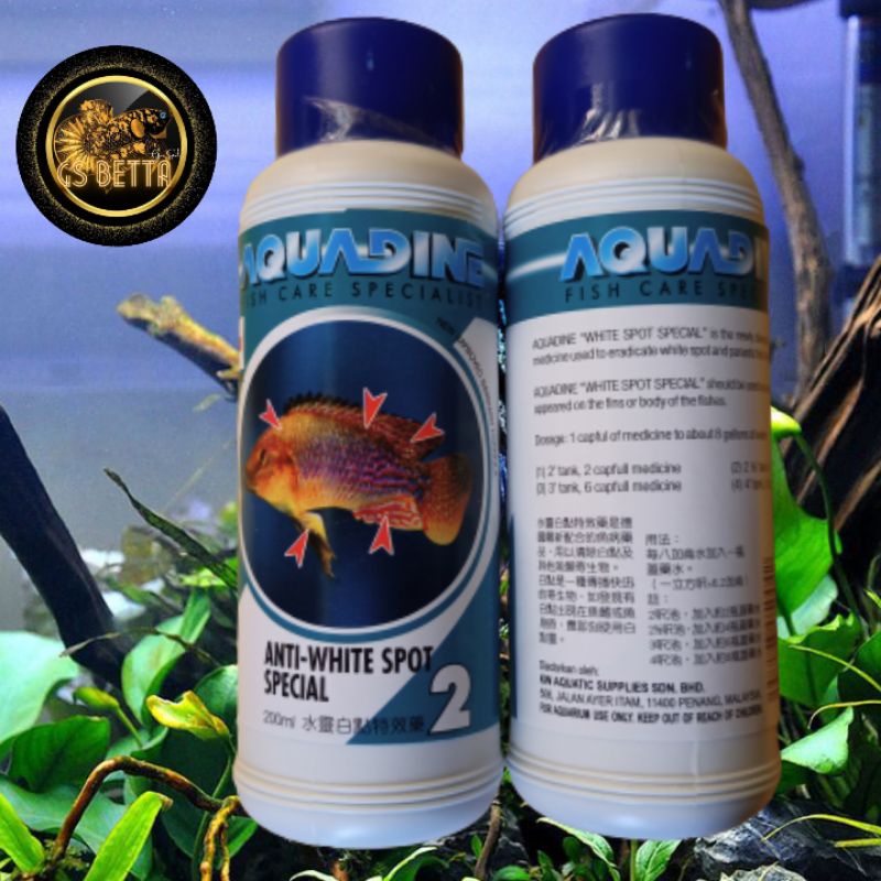 AQUADINE Anti White Spot 200ml(Ubat Biru / Ubat Bintik Putih) kegunaan aquarium