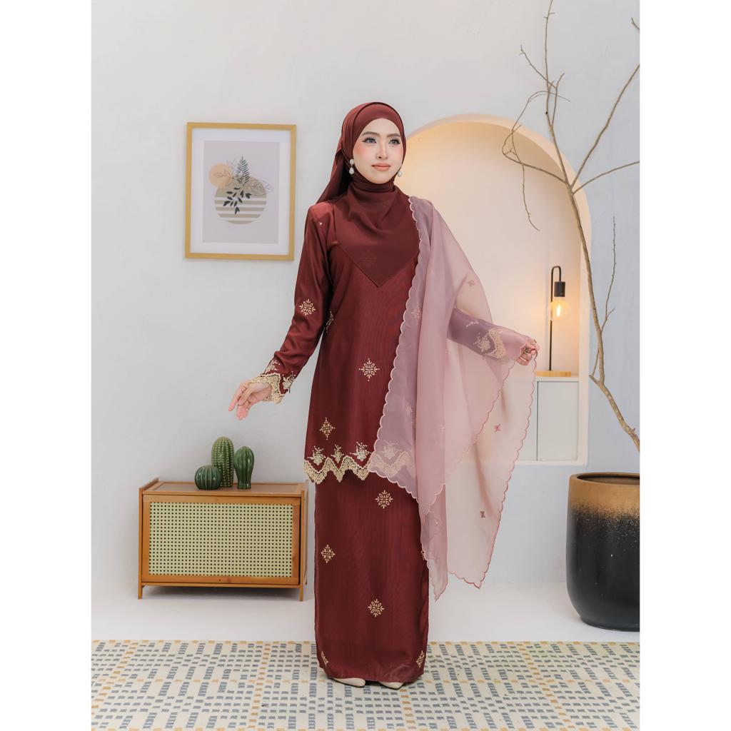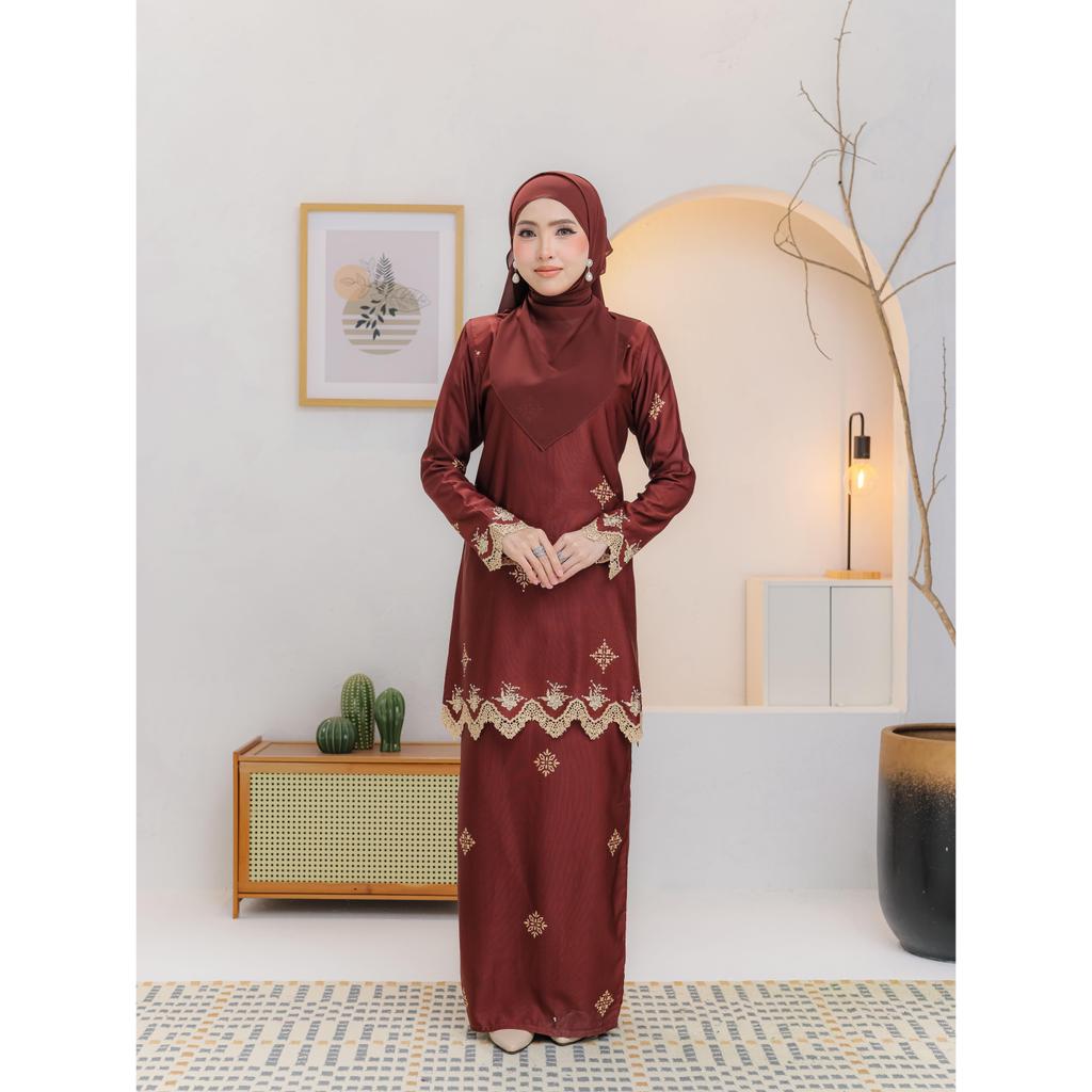 Set Family Kurung Songket Mahsuri Rich Brown Baju Kurung Moden Ibu Anak Set Sedondon Baju Raya 2026