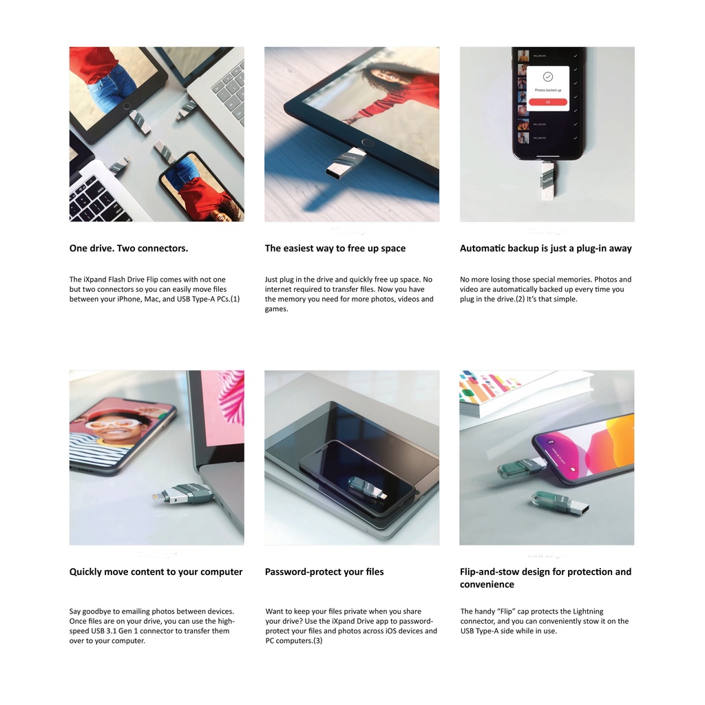 SanDisk iXPAND Flip USB3.1 iPhone iPad OTG Lightning USB Pendrive (64GB/128GB/256GB)
