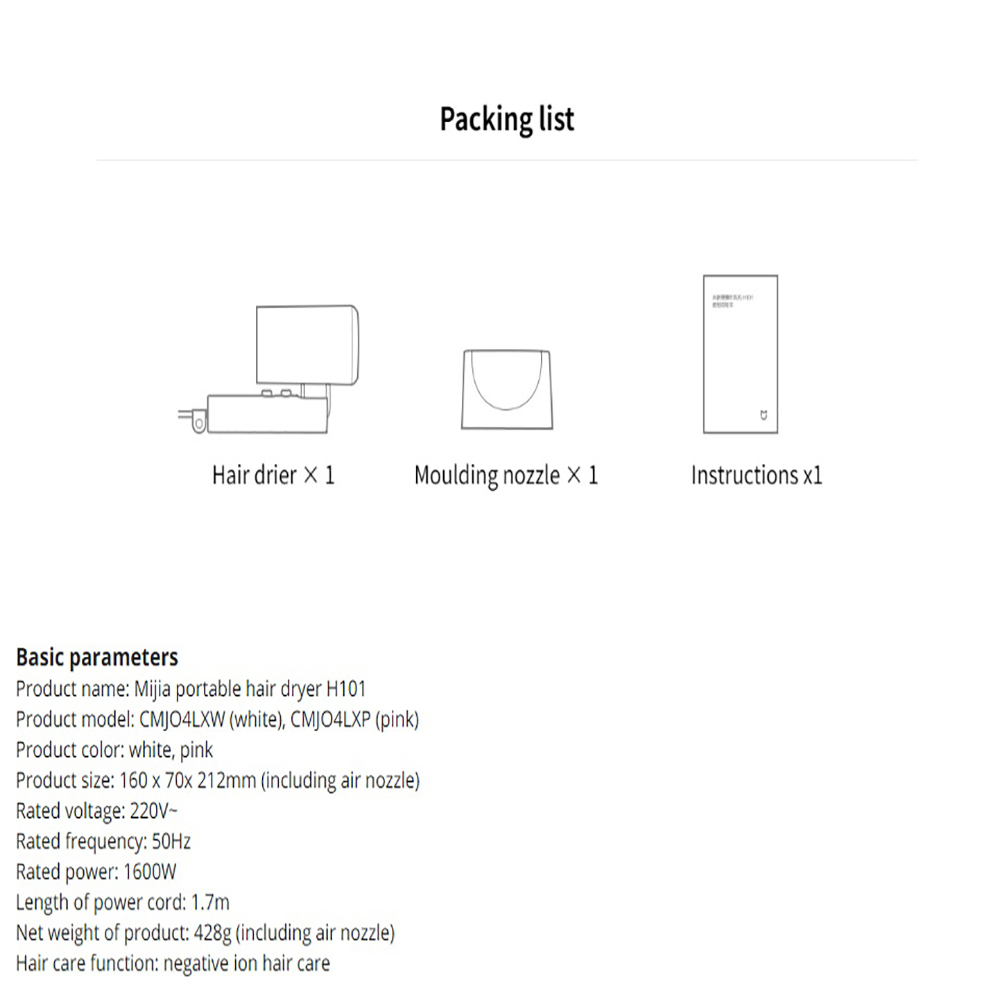 Xiaomi Mijia Hair Dryer Negative Ion Anion H101 2nd Generation 1600W Foldable CMJ04LXW CMJ04LXP