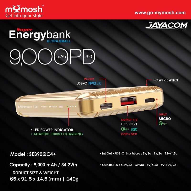 Mymosh SUPER ENERGYBANK All In One Turbo Charge 9000MAH Power Bank Black/Gold/Green/Silver