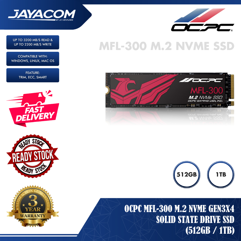 OCPC MFL-300 M.2 NVMe Gen3x4 Solid State Drive SSD – 512GB / 1TB (Up To 3200 MB/s Read & Up To 2200 MB/s Write)