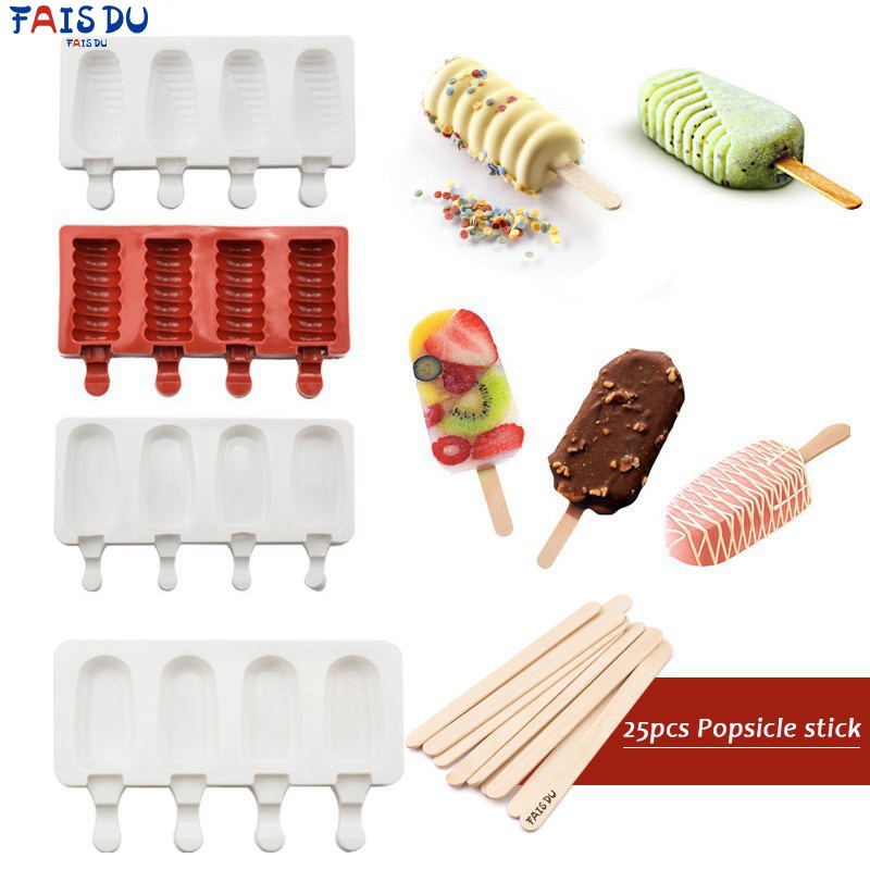 4 Cell Frozen Ice Cream Molds Silicone Popsicle Mold Freeze Ice Cream Maker DIY Dessert Mould Form For Popsicle Mould Cakesicle Mold Tools