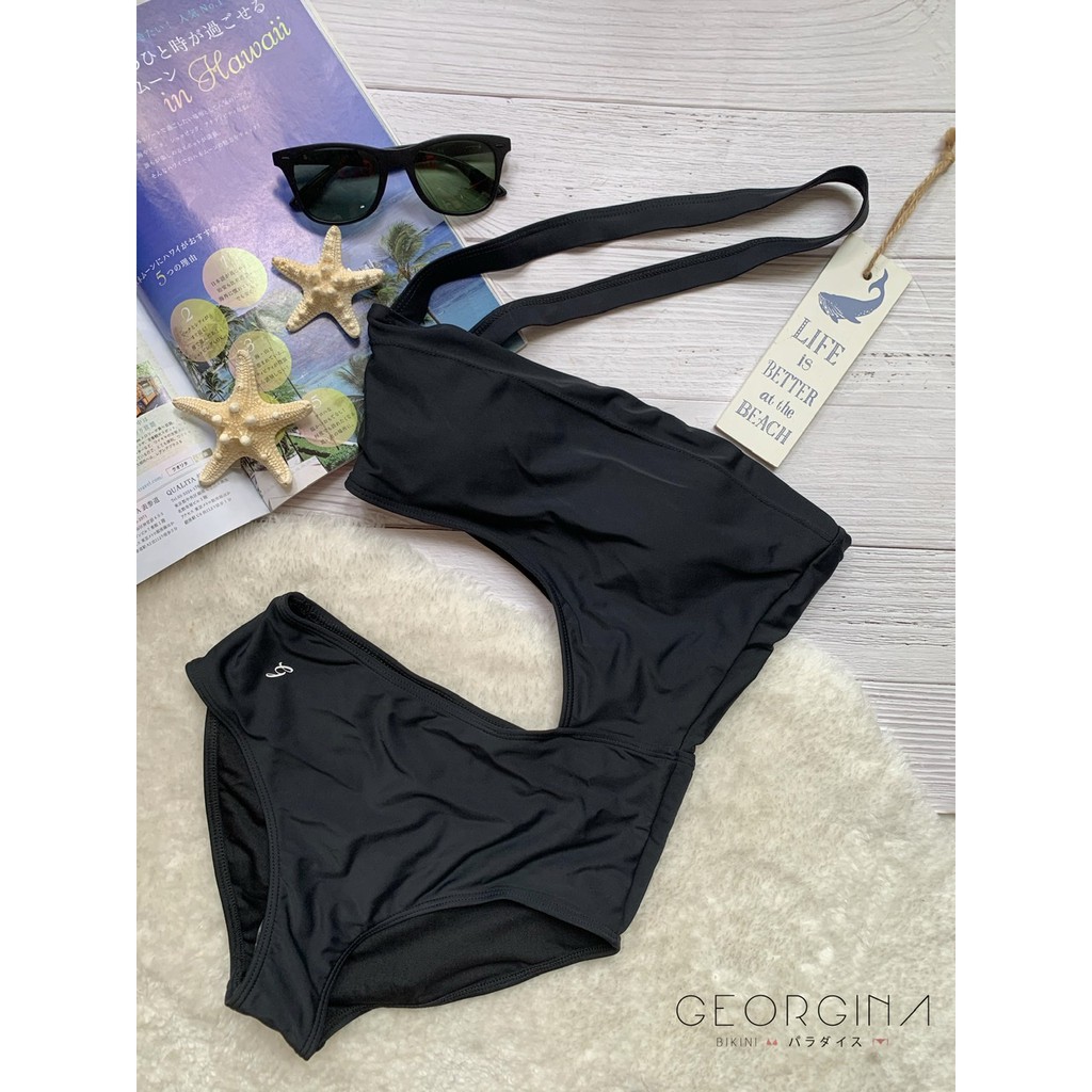 One piece monokini swimwear swimsuit beachwear bathing suit black pink beach vacation